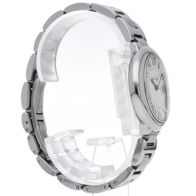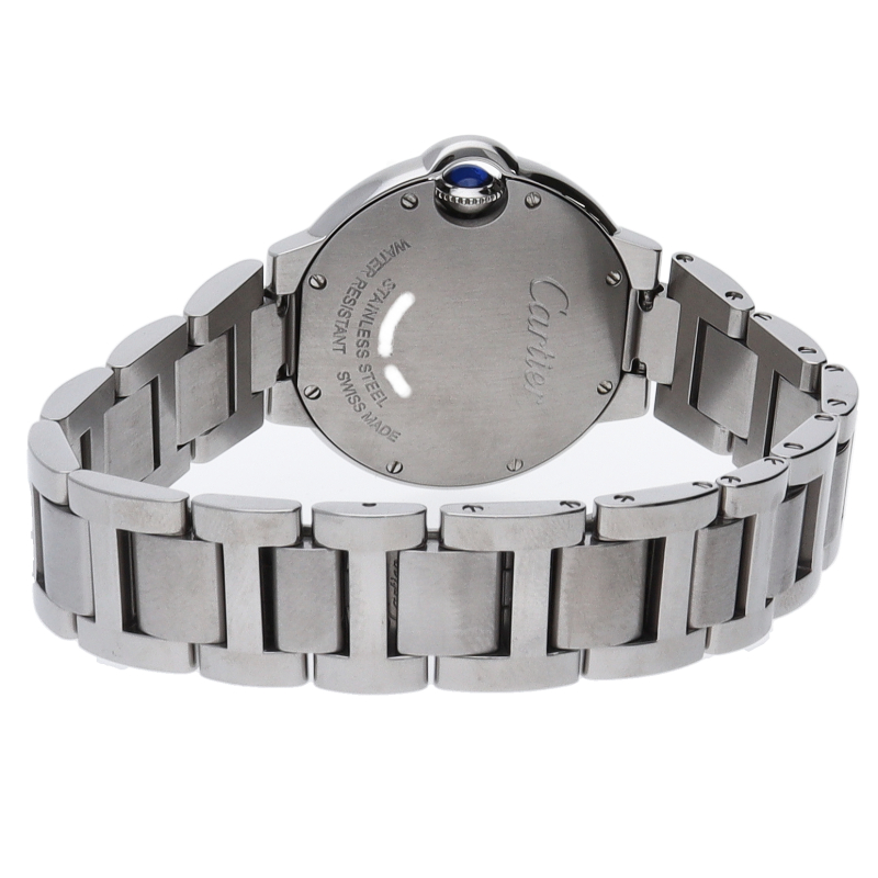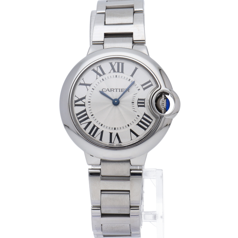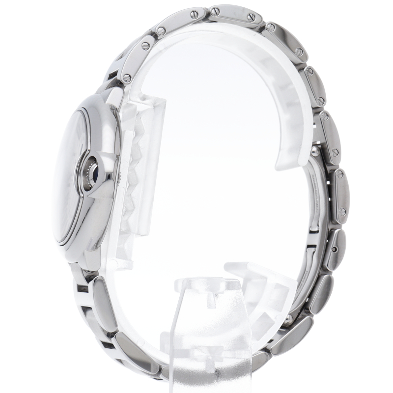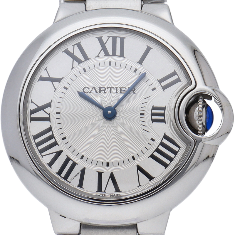 バロンブルーの名の通り風船のような綺麗な曲線が特徴的な人気モデル。深いブルーのリューズに沿って軌跡を描くローマ数字。凸レンズのようにふくらみを帯びたケース、ギョーシェ彫りを施したダイアル、剣型針、ポリッシュ仕上げのリンクス。“バロン ブルー ドゥ カルティエ”の魅力は風船のように漂い、カルティエ ウォッチの世界に多彩なニュアンスを添えます。