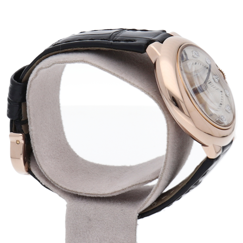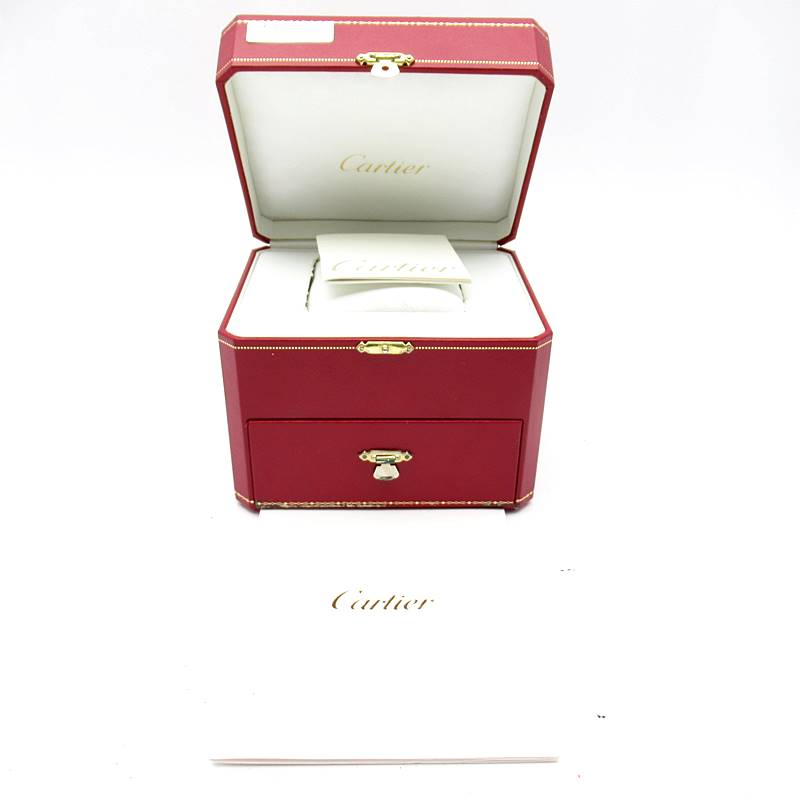 極美品。革バンドは純正品ですが、腕周が短いのでお安く提供致します。革バンドはカルティエにて有料ですが、購入可能です。K18PG製尾錠。最大13cm。
