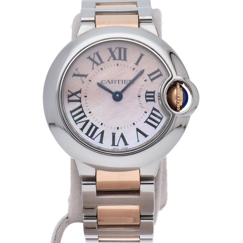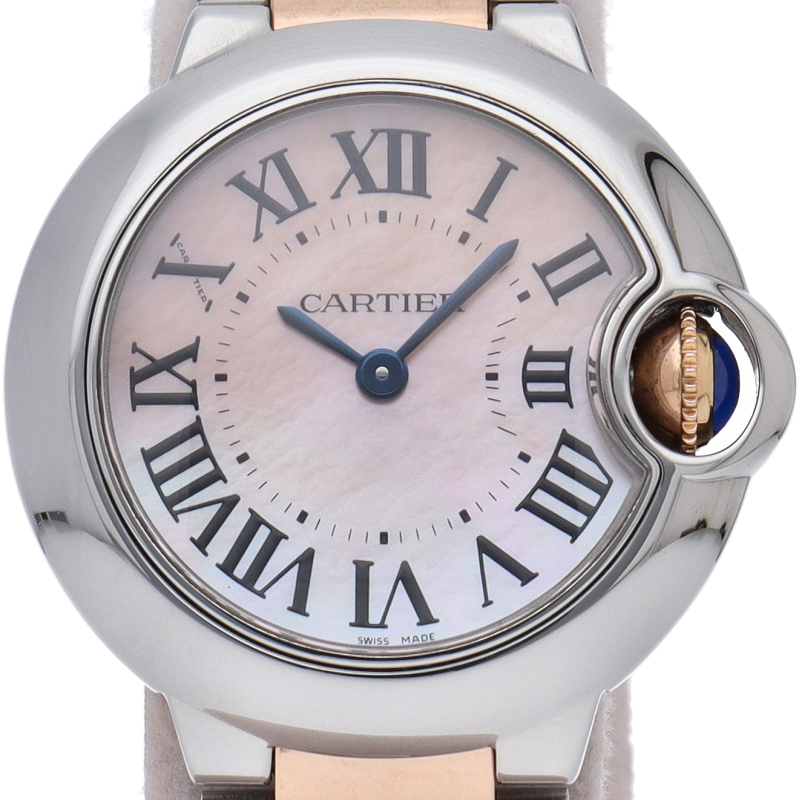 バロンブルーの名の通り風船のような綺麗な曲線が特徴的な人気モデル。優しい印象の丸いケースにカルティエらしい繊細さを融合しました。