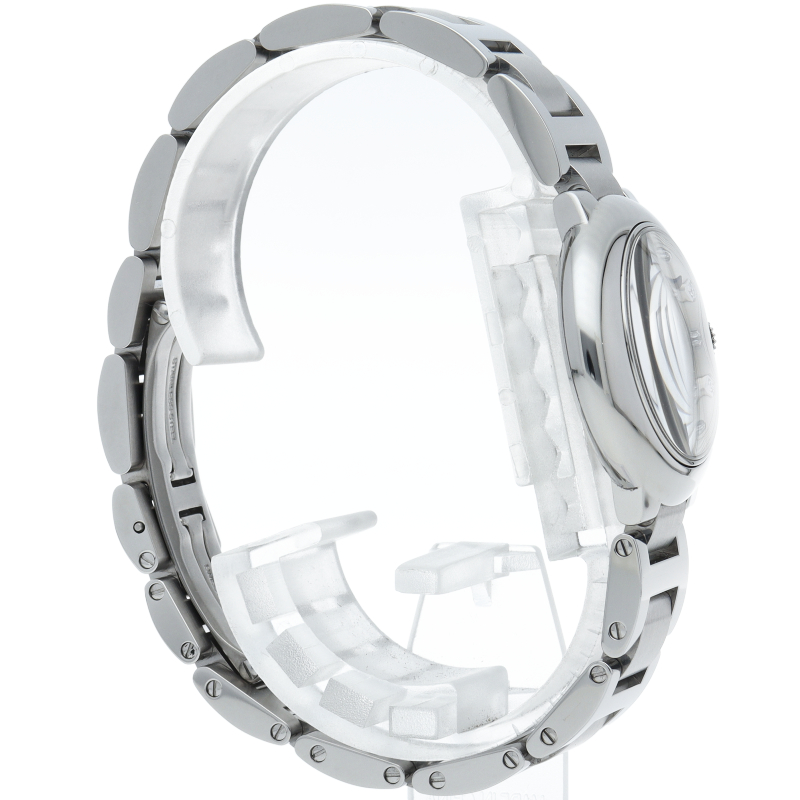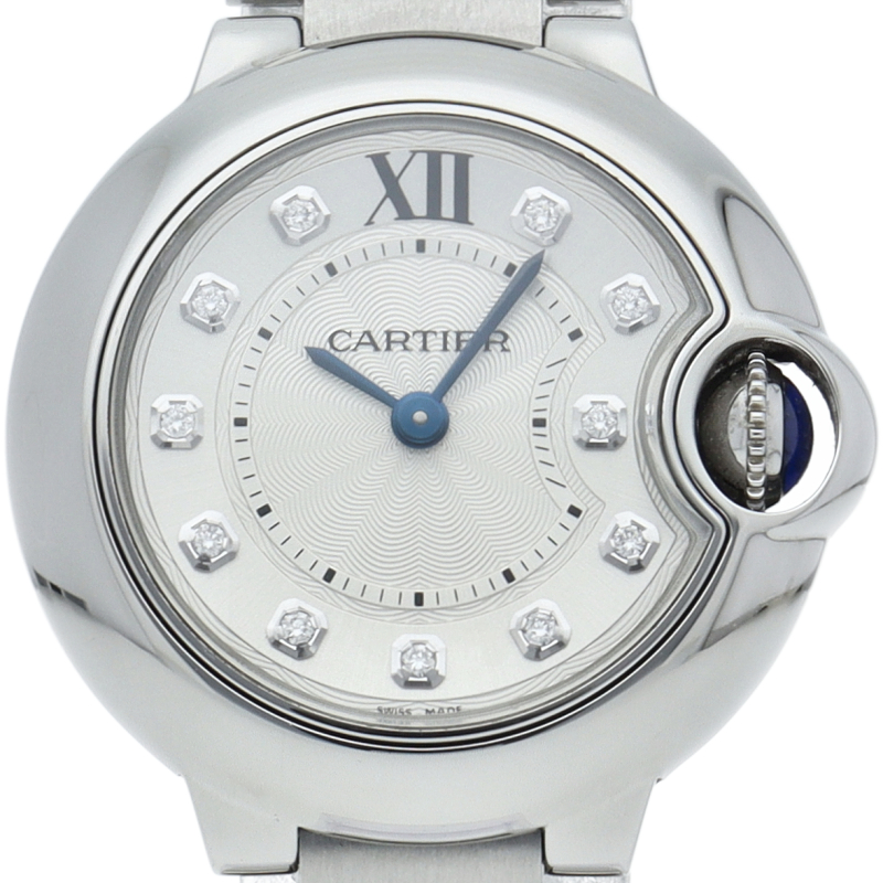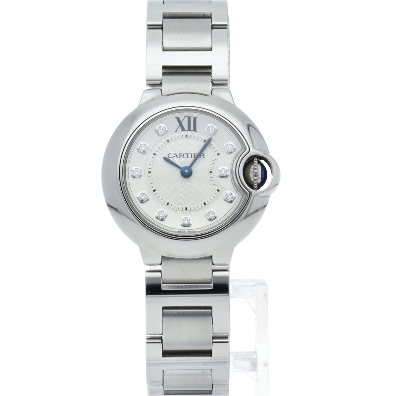 バロンブルーの名の通り風船のような綺麗な曲線が特徴的な人気モデル。優しい印象の丸いケースにカルティエらしい繊細さを融合しました。11Pダイヤ。