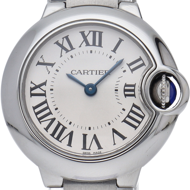 バロンブルーの名の通り風船のような綺麗な曲線が特徴的な人気モデル。優しい印象の丸いケースにカルティエらしい繊細さを融合しました。