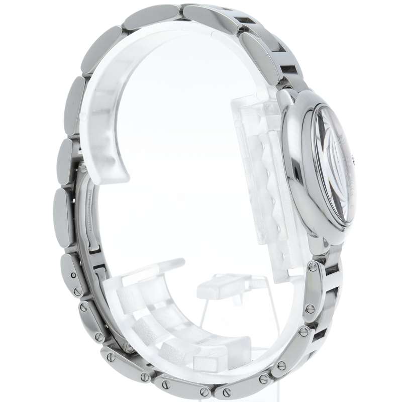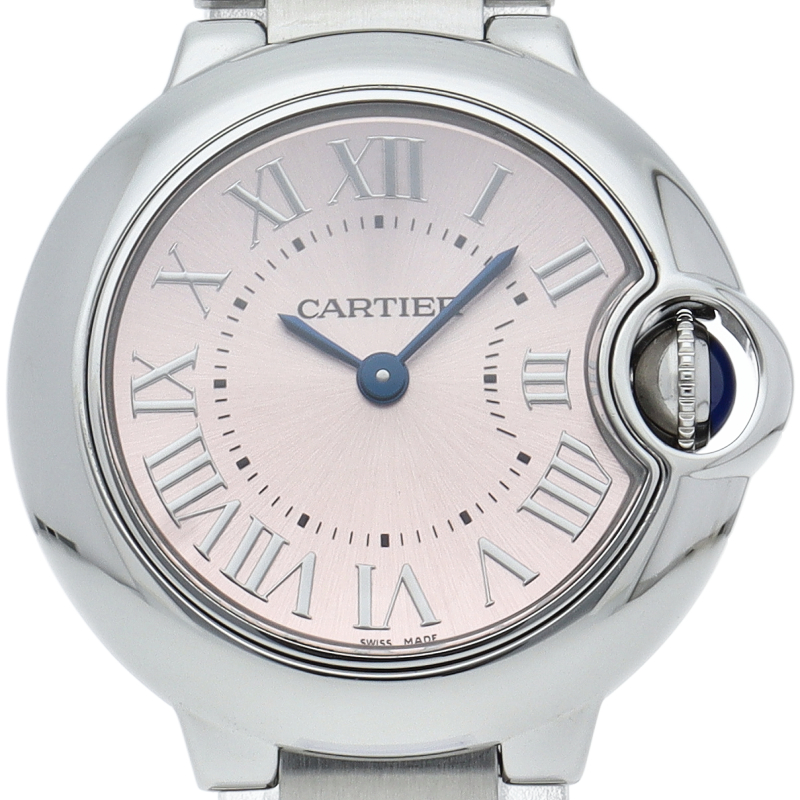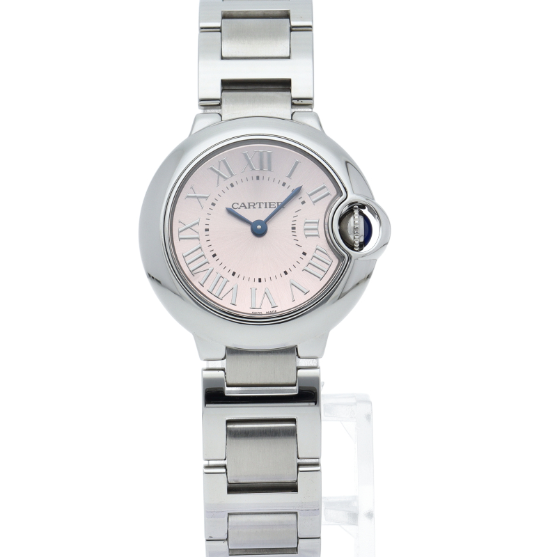 バロンブルーの名の通り風船のような綺麗な曲線が特徴的な人気モデル。こちらは28mm径のレディースモデルで、ピンクダイヤルが可愛らしい一本。華やかさがご希望の方にオススメです。