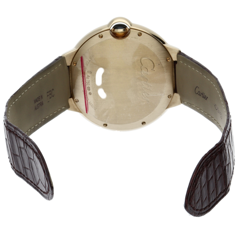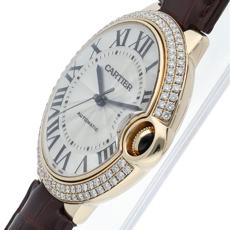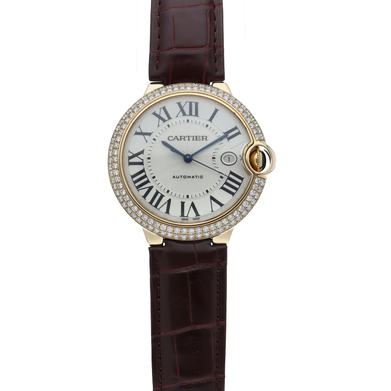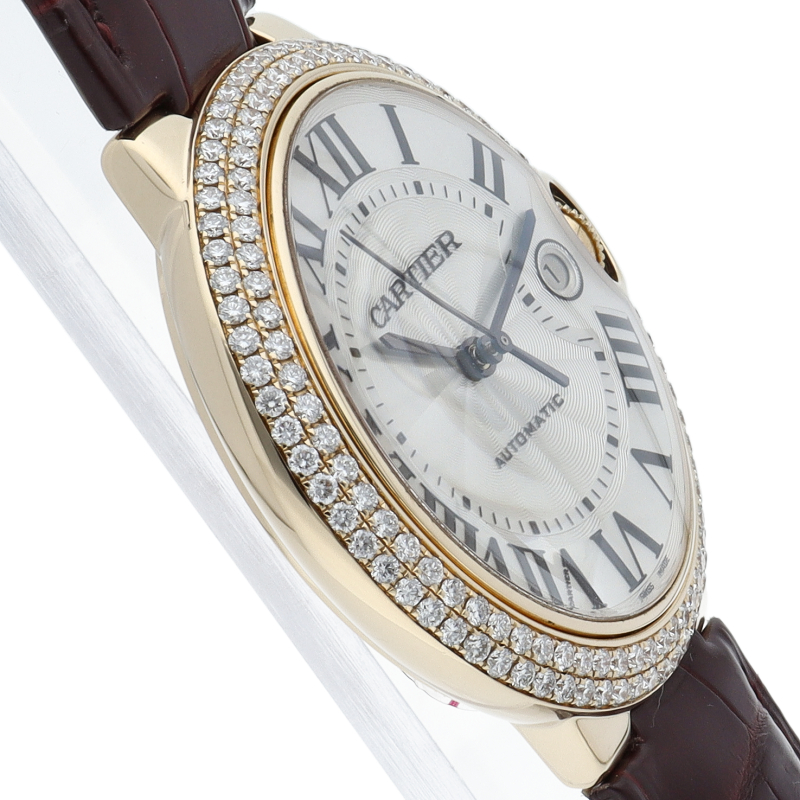 バロンブルーの名の通り風船のような綺麗な曲線が特徴的な人気モデル。深いブルーのリューズに沿って軌跡を描くローマ数字。凸レンズのようにふくらみを帯びたケース、ギョーシェ彫りを施したダイアル、剣型針、ポリッシュ仕上げのリンクス。“バロン ブルー ドゥ カルティエ”の魅力は風船のように漂い、カルティエ ウォッチの世界に多彩なニュアンスを添えます。