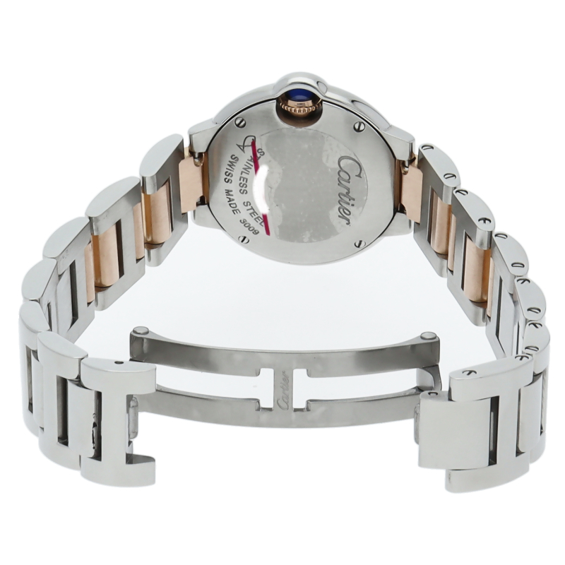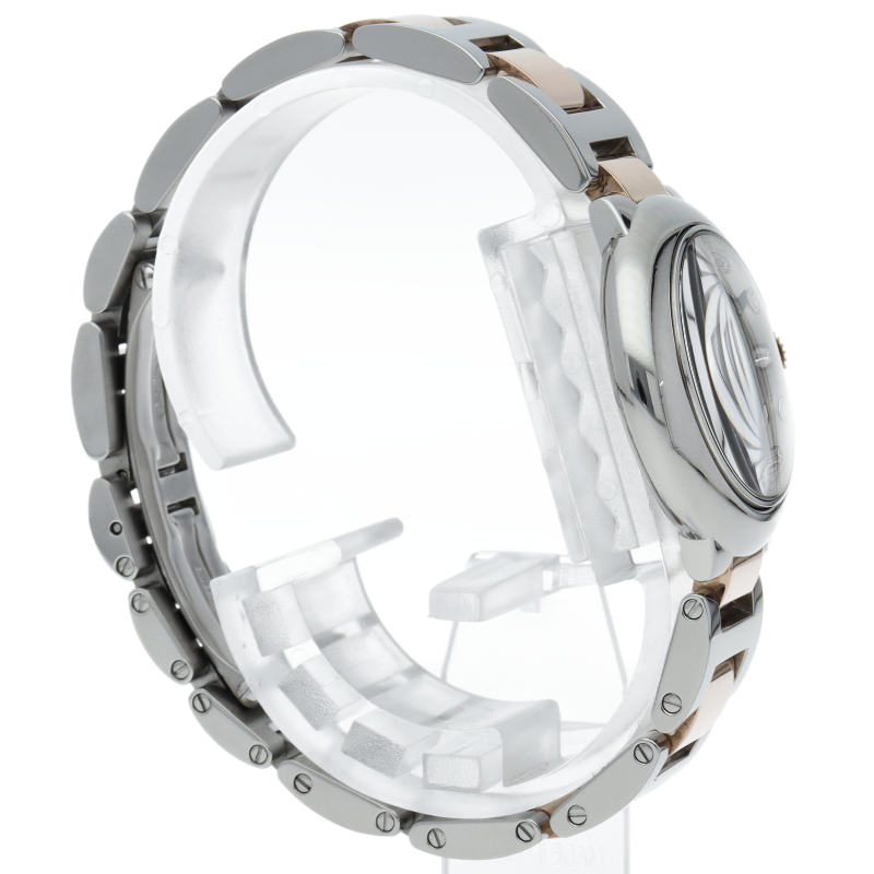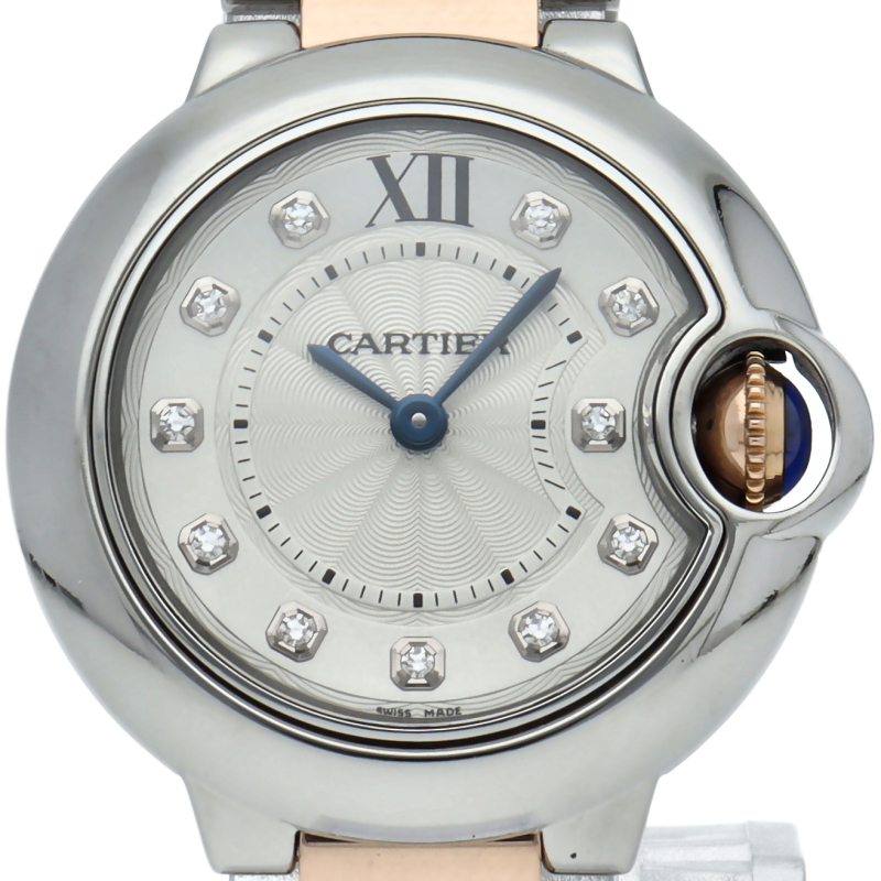 バロンブルーの名の通り風船のような綺麗な曲線が特徴的な人気モデル。優しい印象の丸いケースにカルティエらしい繊細さを融合しました。11Pダイヤ。