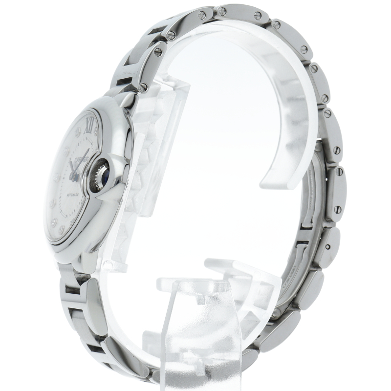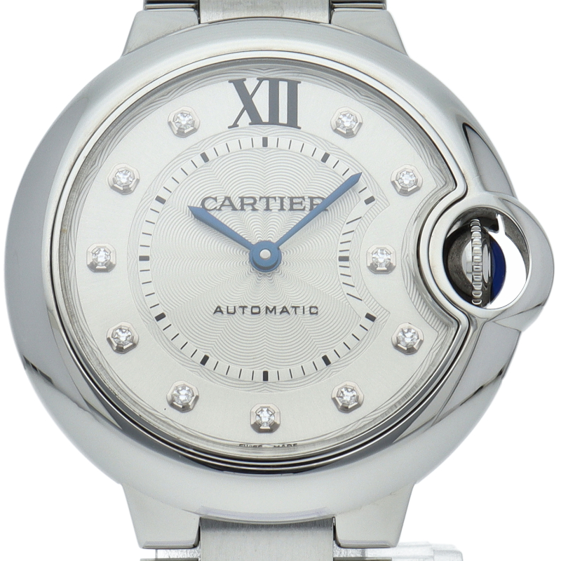 バロンブルーの名の通り風船のような綺麗な曲線が特徴的な人気モデル。優しい印象の丸いケースにカルティエらしい繊細さを融合しました。11Pダイヤ。