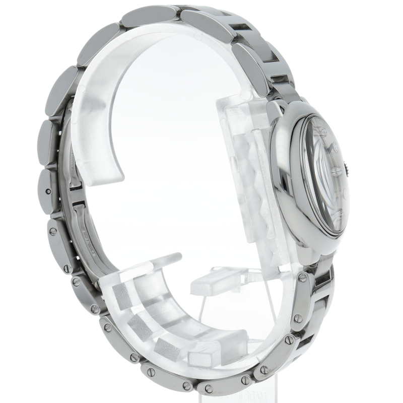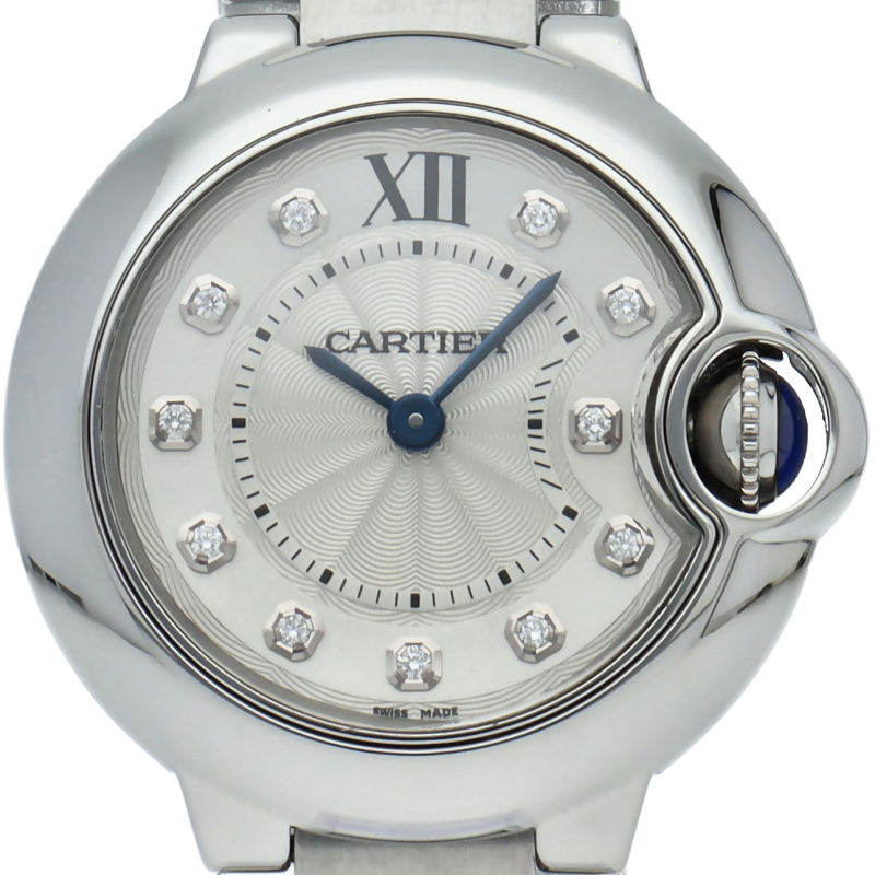 バロンブルーの名の通り風船のような綺麗な曲線が特徴的な人気モデル。優しい印象の丸いケースにカルティエらしい繊細さを融合しました。11Pダイヤ。