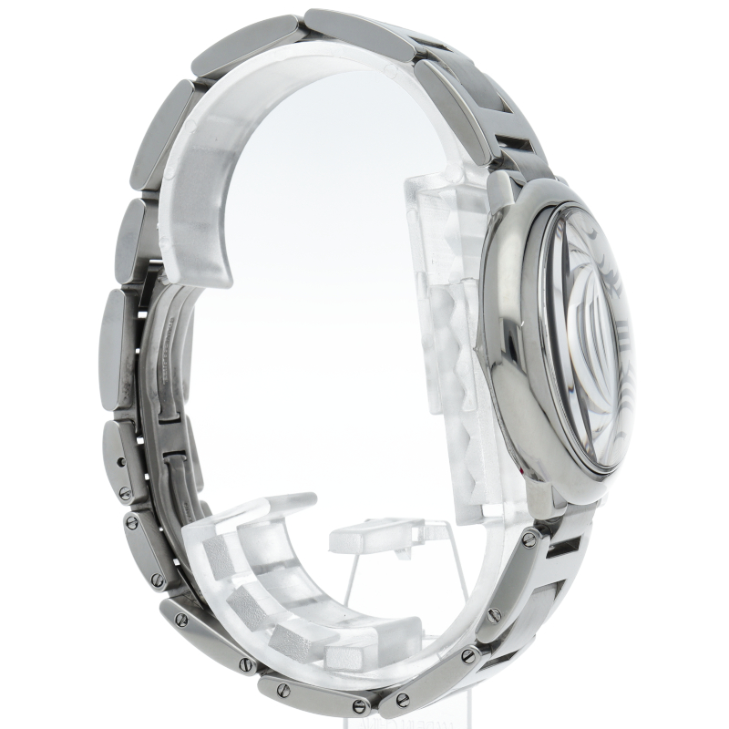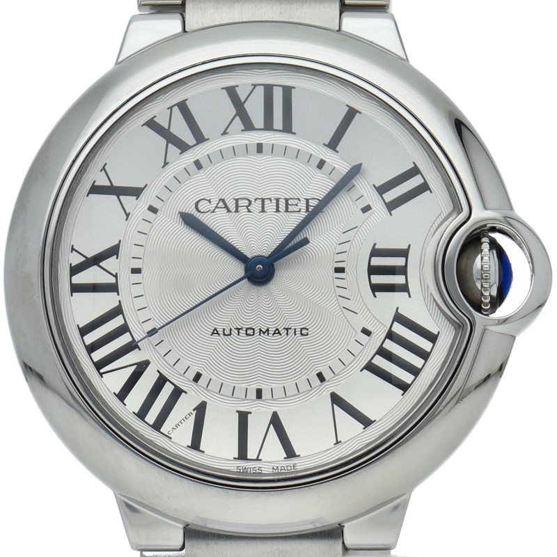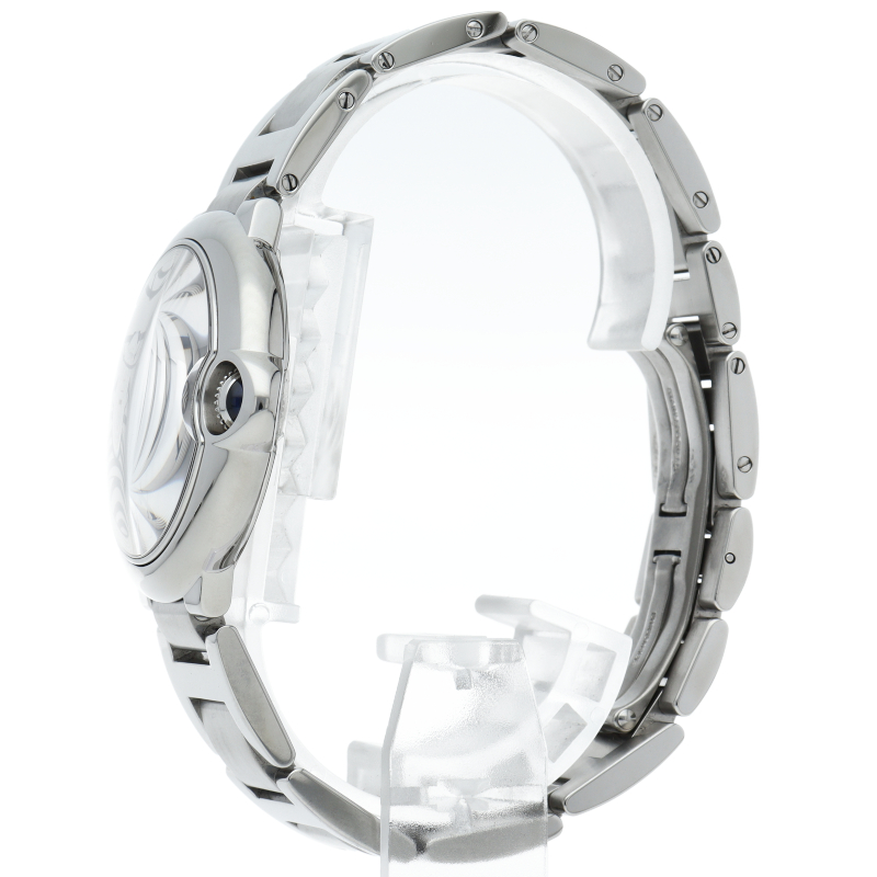 バロンブルーの名の通り風船のような綺麗な曲線が特徴的な人気モデル。深いブルーのリューズに沿って軌跡を描くローマ数字。凸レンズのようにふくらみを帯びたケース、ギョーシェ彫りを施したダイアル、剣型針、ポリッシュ仕上げのリンクス。“バロン ブルー ドゥ カルティエ”の魅力は風船のように漂い、カルティエ ウォッチの世界に多彩なニュアンスを添えます。