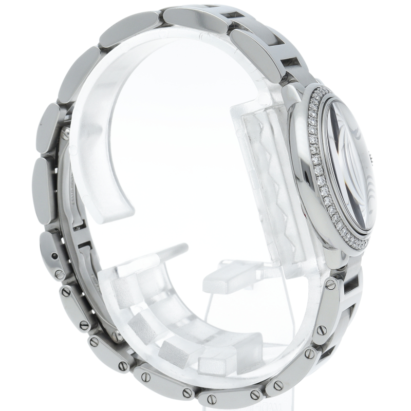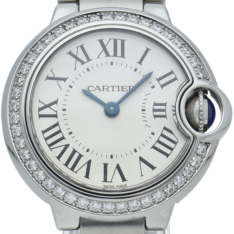 バロンブルーの名の通り風船のような綺麗な曲線が特徴的な人気モデル。ベゼルにはダイヤモンドを贅沢にあしらい、優しい印象の丸いケースにカルティエらしい繊細さを融合しました。