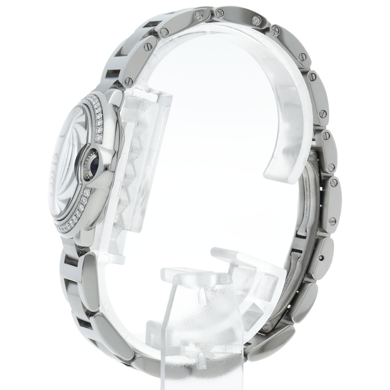 バロンブルーの名の通り風船のような綺麗な曲線が特徴的な人気モデル。ベゼルにはダイヤモンドを贅沢にあしらい、優しい印象の丸いケースにカルティエらしい繊細さを融合しました。