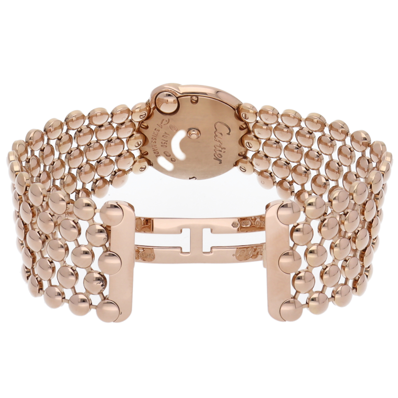 ブランとはホワイトの意味で、その名の通り、バロンブルーの特徴であるサファイアリューズはダイヤモンドに変更されています。小さなゴールドのボールをつなぎ合わせたブレスレットは、時計工芸の粋を極めたもので、しなやかな装着感と華やかさを併せ持ちます。