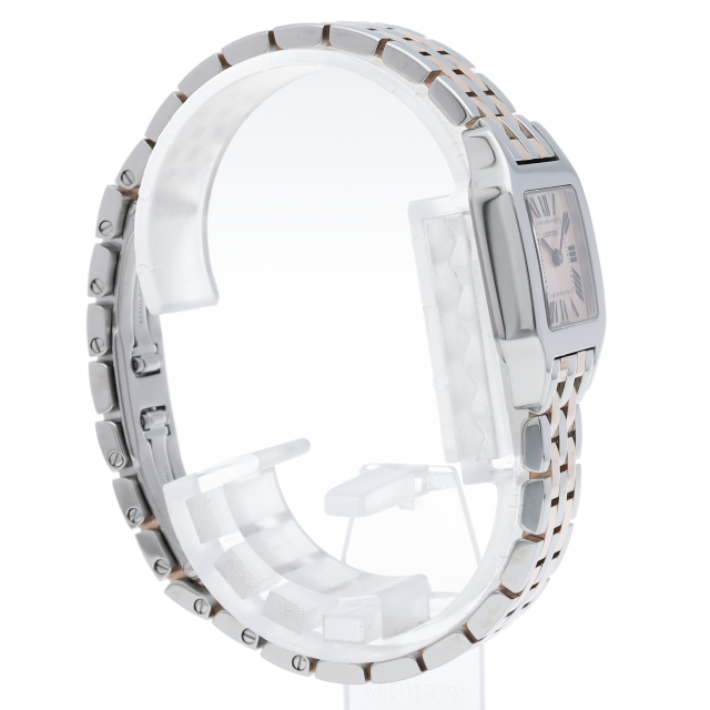 5連ブレスがしなやかで小ぶりキュートなカルティエらしいウォッチです。ホワイト文字盤にブルーの指針が美しく小ぶりながら見やすいインデックスとともに時を進めます。リューズのブルースピネルがラグジュアリーなアクセントになっています。