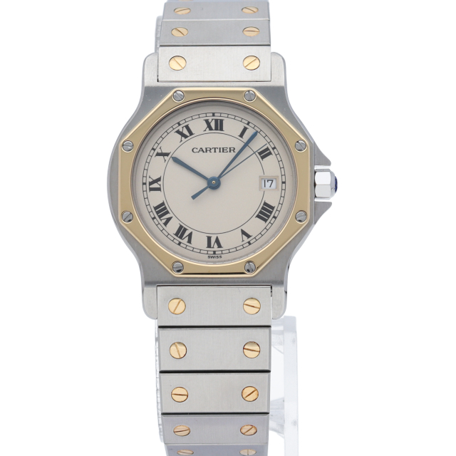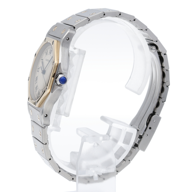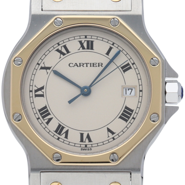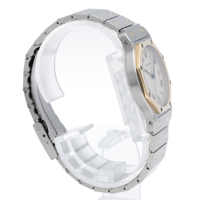 サントスオクタゴンは現行モデルには無い8角形(オクタゴン)ケースとサントスのモチーフである「ビス」がベゼルとブレスレットに打ちつけられているのが特徴的で、生産終了後も人気のモデルです。シャープでクラシカルな印象を与える個性派向けのモデル。
