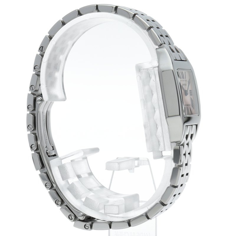 5連ブレスがしなやかで小ぶりキュートなカルティエらしいウォッチです。ピンクシェル文字盤にブルーの指針が美しく小ぶりながら見やすいインデックスとともに時を進めます。