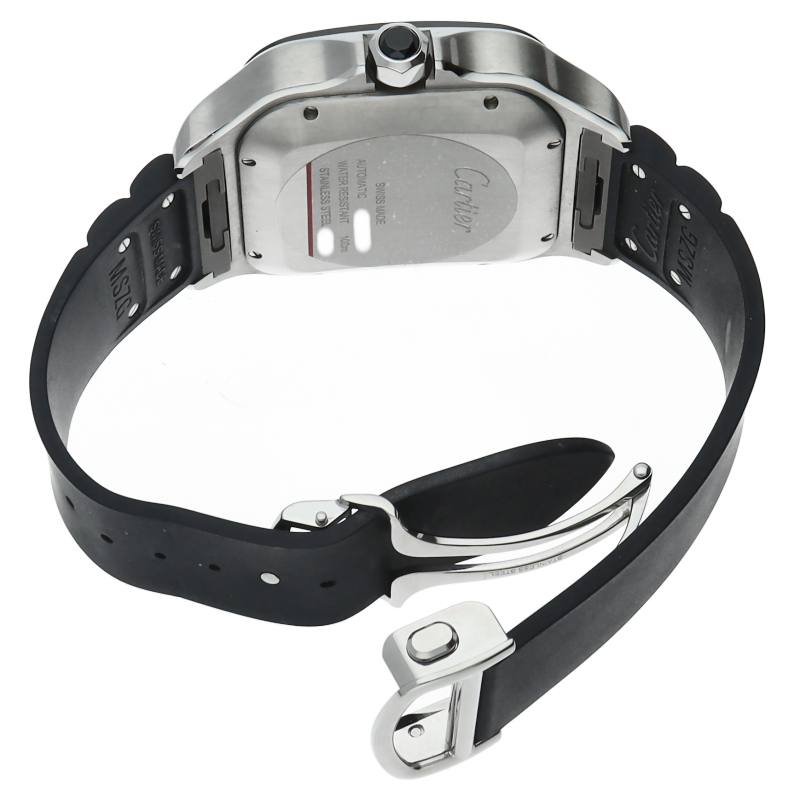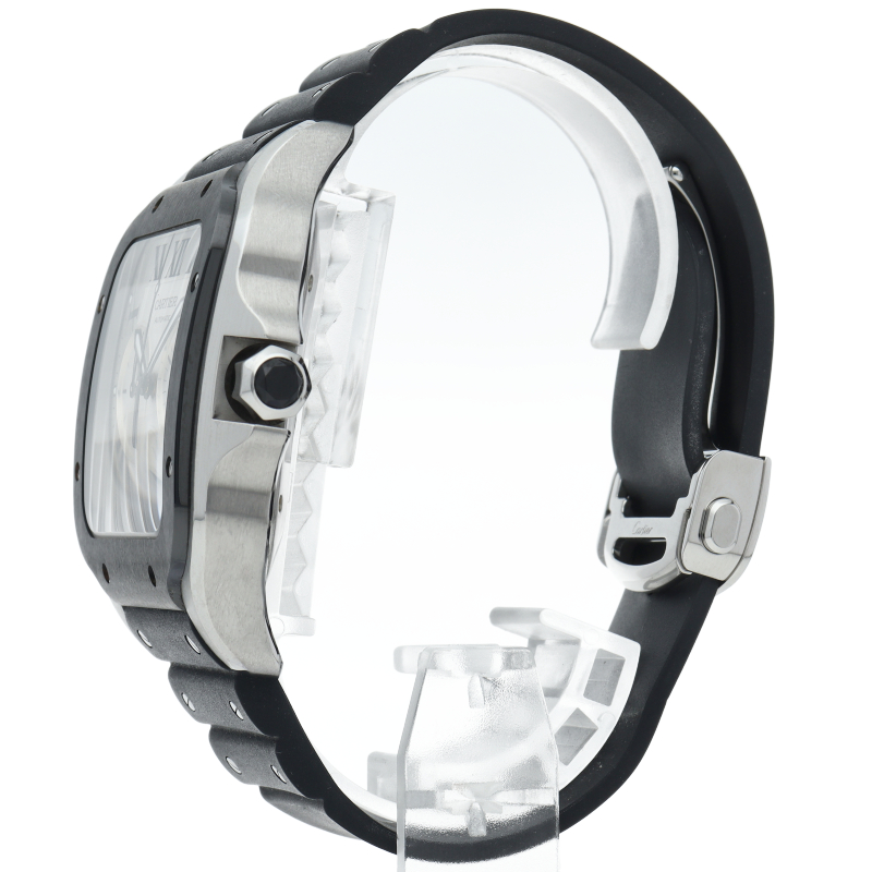 2018年にモデルチェンジされたサントス ドゥ カルティエの入荷です。新たに設計され、43.3mmの迫力あるXLサイズのケースに、カルティエ自社製の1904 CH MCムーヴメントを搭載。従来のクロノグラフとは違いスタート、リセットのボタンが無く、ケース9時側にあるプッシュボタンとリューズで操作する斬新なデザインの時計です。