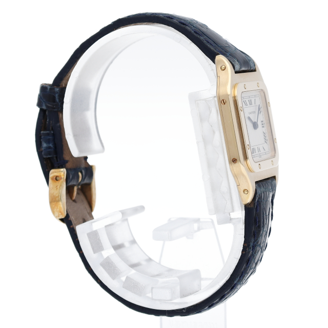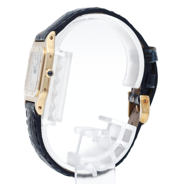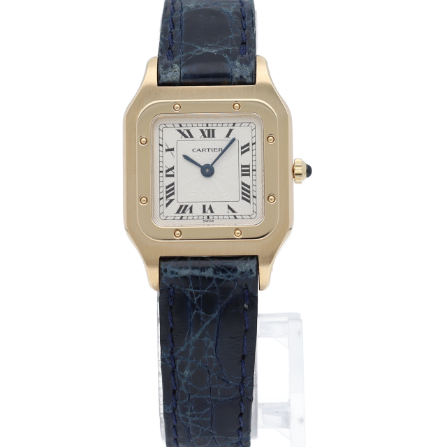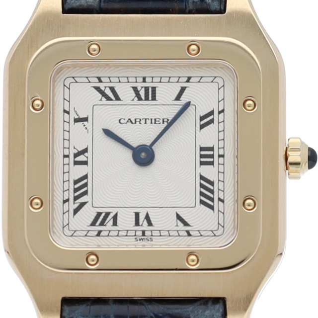 1904年にルイ・カルティエがブラジル人飛行士アルベルト・サントス=デュモンのために作られたとされる「サントスデュモン」。こちらは薄くエレガントなドレスウォッチです。こちらのレディースサイズは今では流通が少なく大変希少なモデルです。
