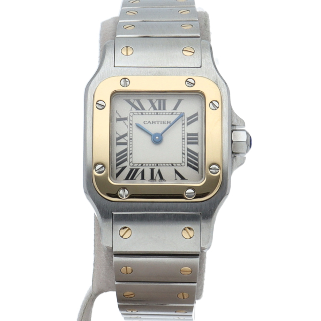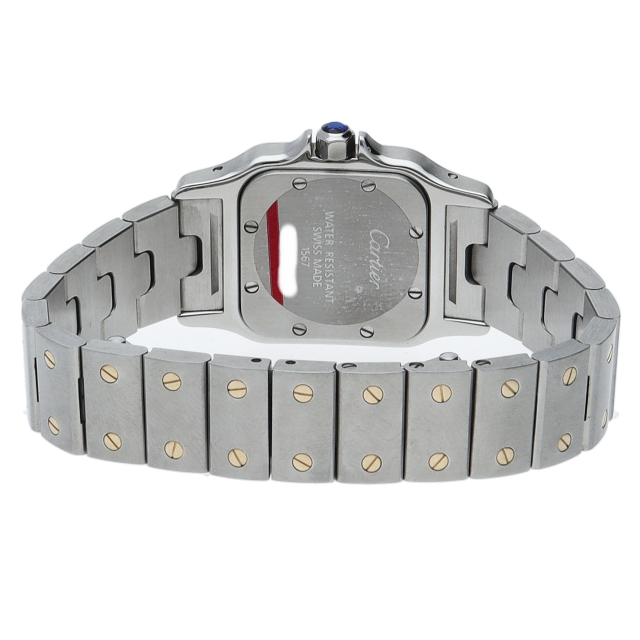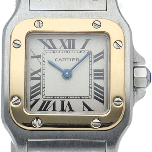 既に生産が終了となった今も根強い人気を誇る「サントスガルベ」。ベゼル・ブレスに施されたビスが特徴的な1本。