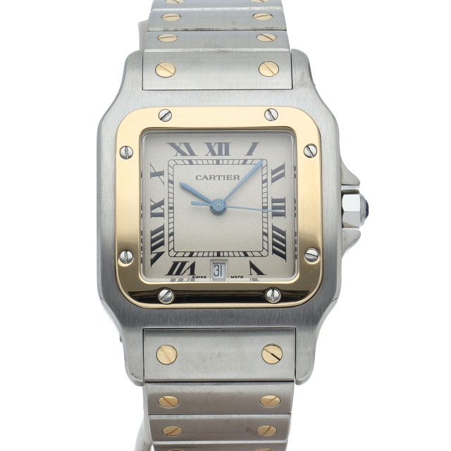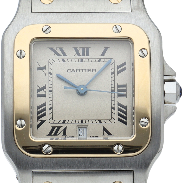 既に生産が終了となった今も根強い人気を誇る「サントスガルベ」。ベゼル・ブレスに施されたビスが特徴的な1本。