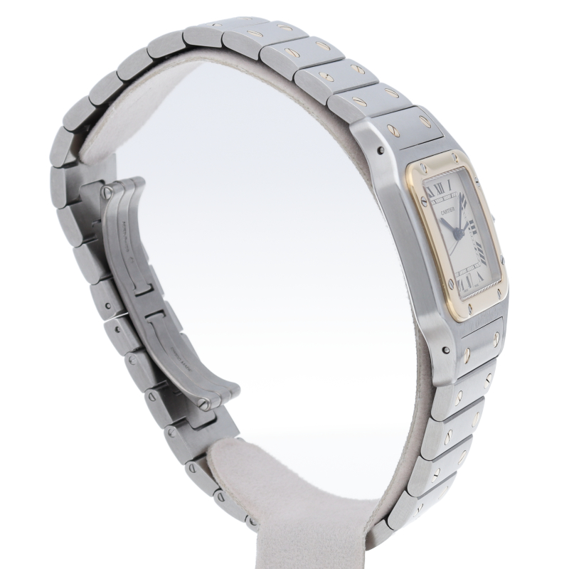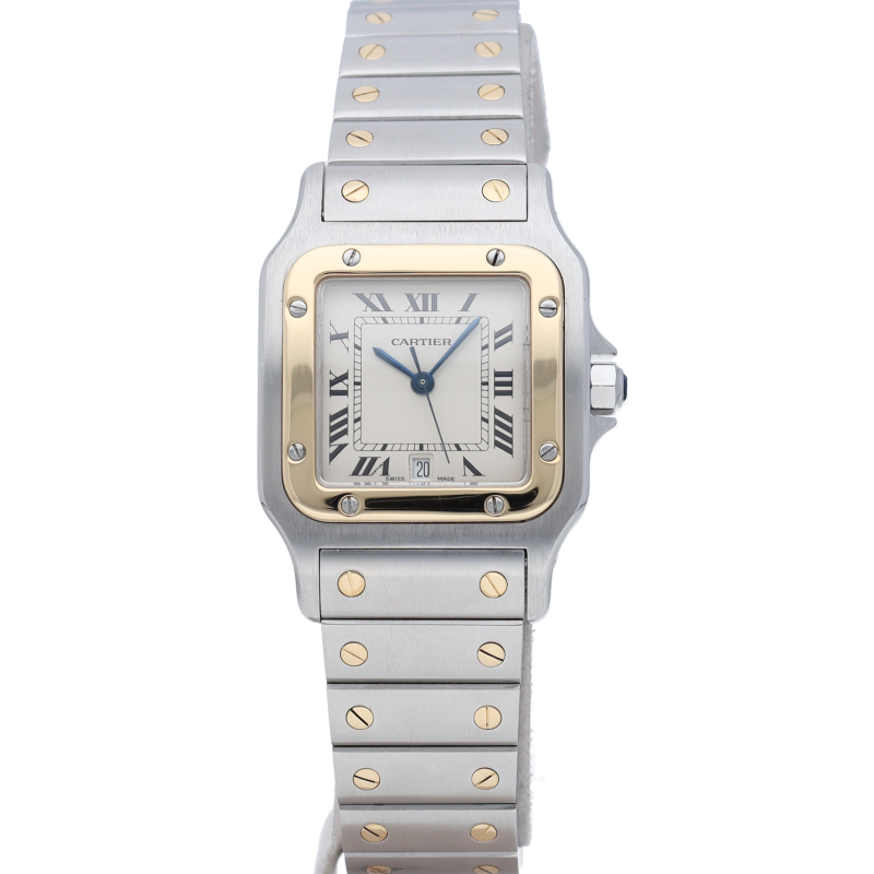 既に生産が終了となった今も根強い人気を誇る「サントスガルベ」。ベゼル・ブレスに施されたビスが特徴的な1本。