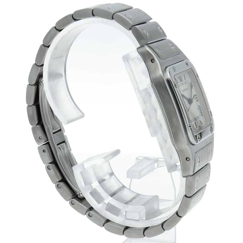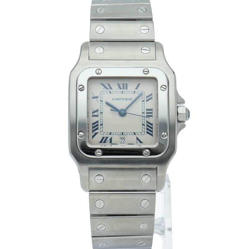 既に生産が終了となった今も根強い人気を誇る「サントスガルベ」。ベゼル・ブレスに施されたビスが特徴的な1本です。