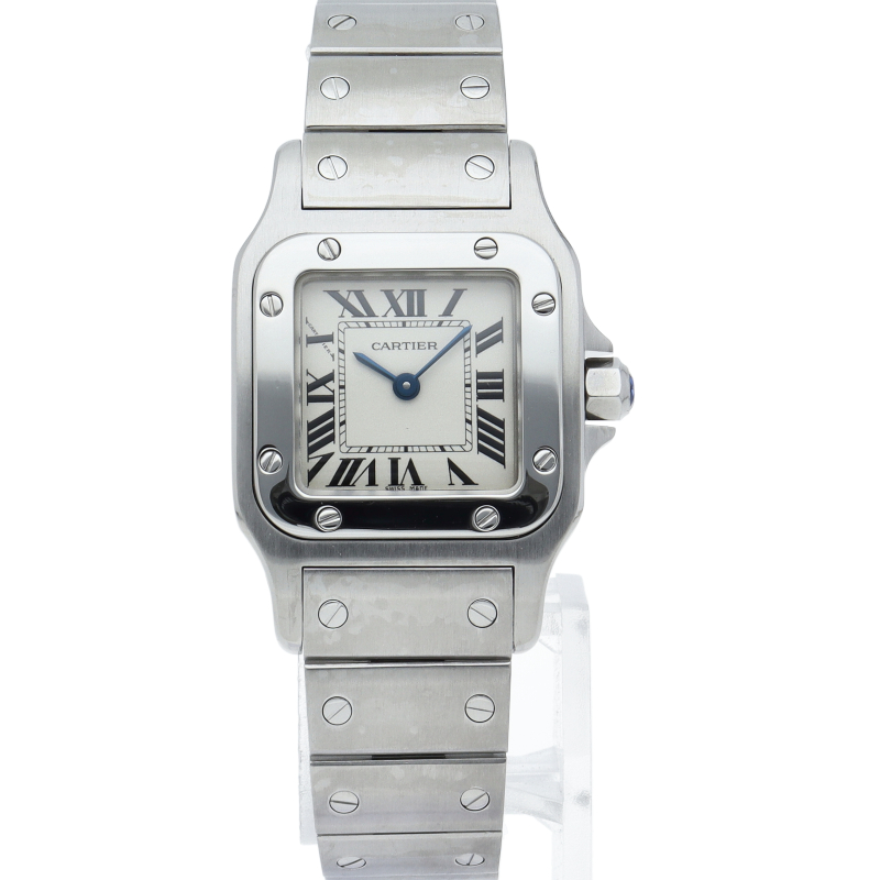 既に生産が終了となった今も根強い人気を誇る「サントスガルベ」。ベゼル・ブレスに施されたビスが特徴的な1本です。