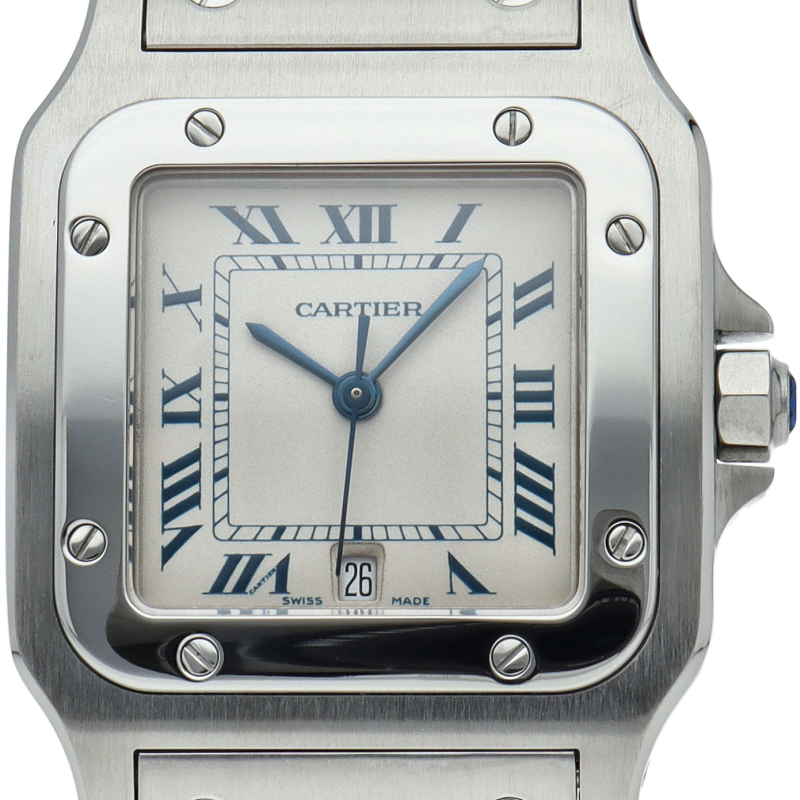 既に生産が終了となった今も根強い人気を誇る「サントスガルベ」。ベゼル・ブレスに施されたビスが特徴的な1本。