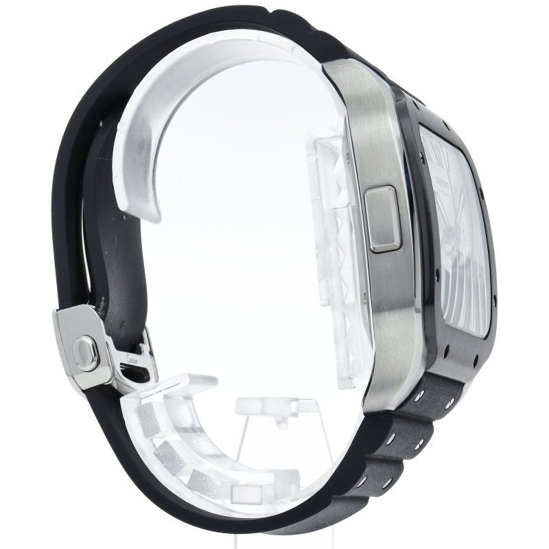 2018年にモデルチェンジされたサントス ドゥ カルティエの入荷です。新たに設計され、43.3mmの迫力あるXLサイズのケースに、カルティエ自社製の1904 CH MCムーヴメントを搭載。従来のクロノグラフとは違いスタート、リセットのボタンが無く、ケース9時側にあるプッシュボタンとリューズで操作する斬新なデザインの時計です。容易にベルト交換が行える「クイックスイッチ」を搭載しております。