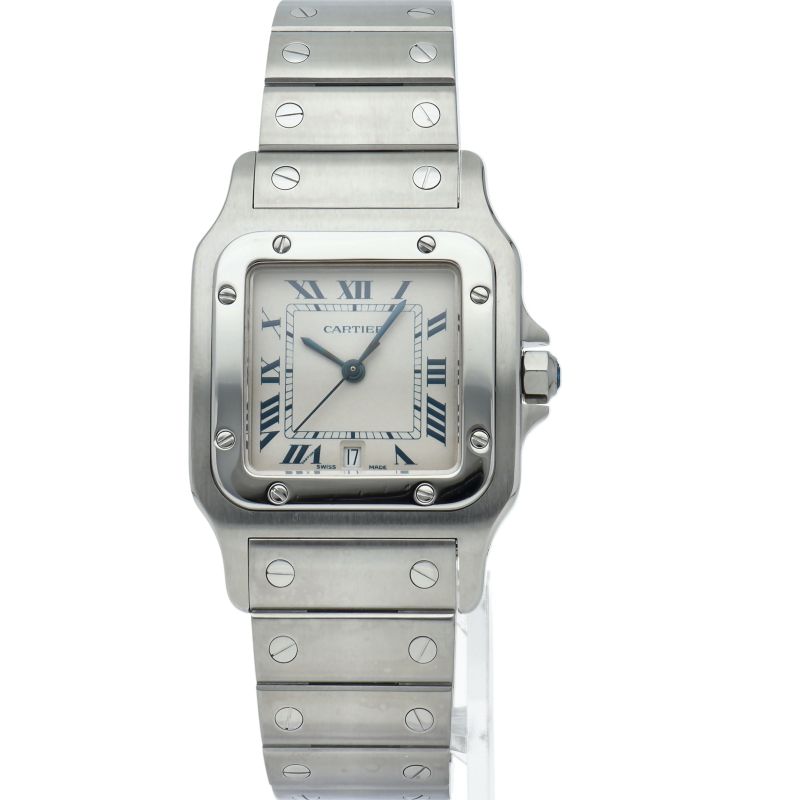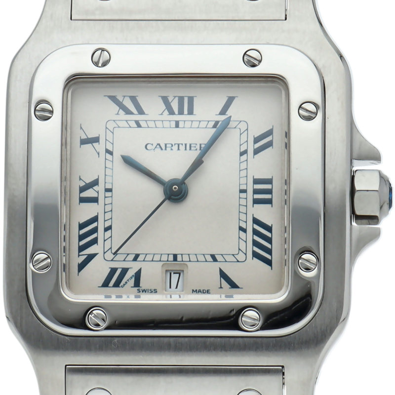 既に生産が終了となった今も根強い人気を誇る「サントスガルベ」。ベゼル・ブレスに施されたビスが特徴的な1本。