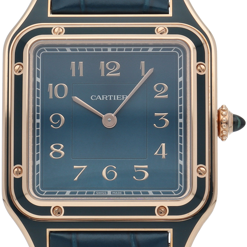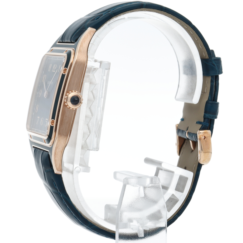 ブラジルの偉大な発明家にして飛行家であるアルベルト・サントス=デュモンが1904年、カルティエに注文し「世界初の腕時計」の原型とも言われた腕時計を忠実に再現したモデルが登場。 幾何学的なフォルムとビスモチーフを特徴とする時計ケースはわずか7.3mmという薄型で腕によく馴染む形状、着用感は極めて軽快です。