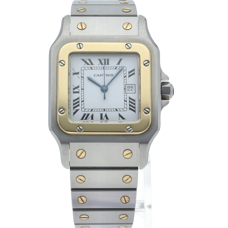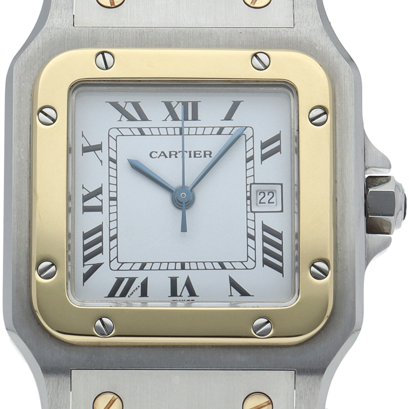 既に生産が終了となった今も根強い人気を誇る「サントスガルベ」。ベゼル・ブレスに施されたビスが特徴的な1本。