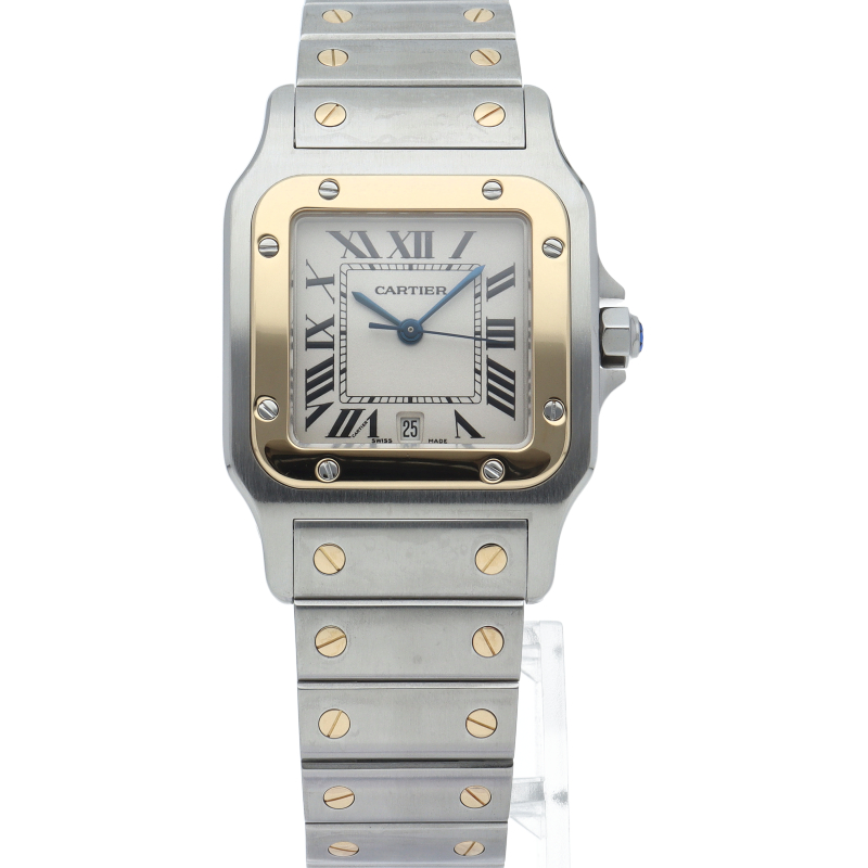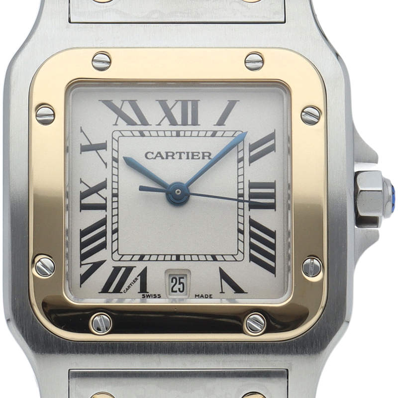 既に生産が終了となった今も根強い人気を誇る「サントスガルベ」。ベゼル・ブレスに施されたビスが特徴的な1本。