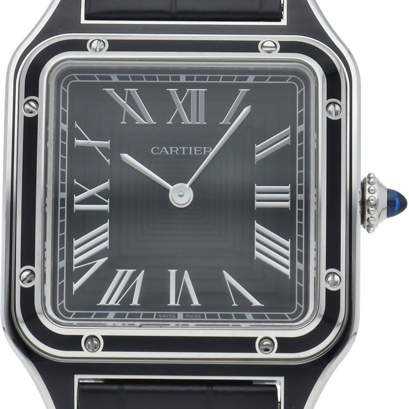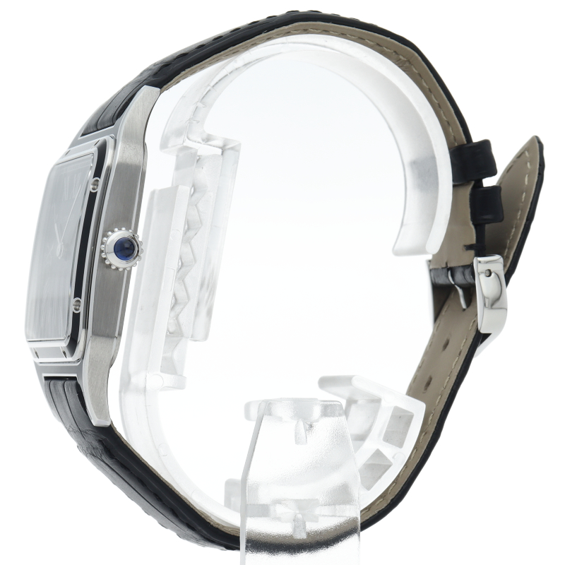 ブラジルの偉大な発明家にして飛行家であるアルベルト・サントス=デュモンが1904年、カルティエに注文し「世界初の腕時計」の原型とも言われた腕時計を忠実に再現したモデルが登場。 幾何学的なフォルムとビスモチーフを特徴とする時計ケースはわずか7.3mmという薄型で腕によく馴染む形状、着用感は極めて軽快です。