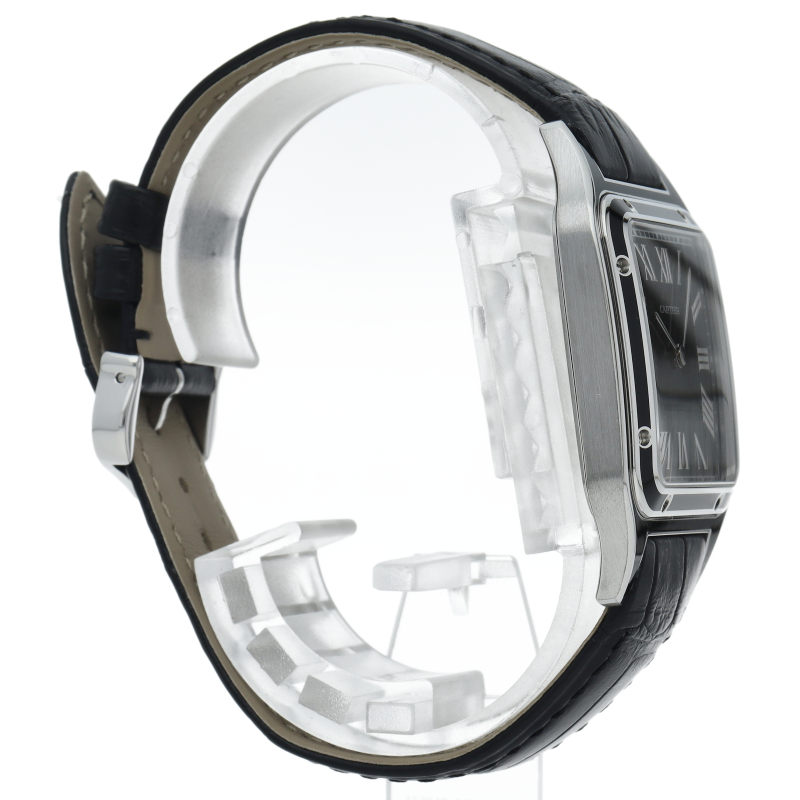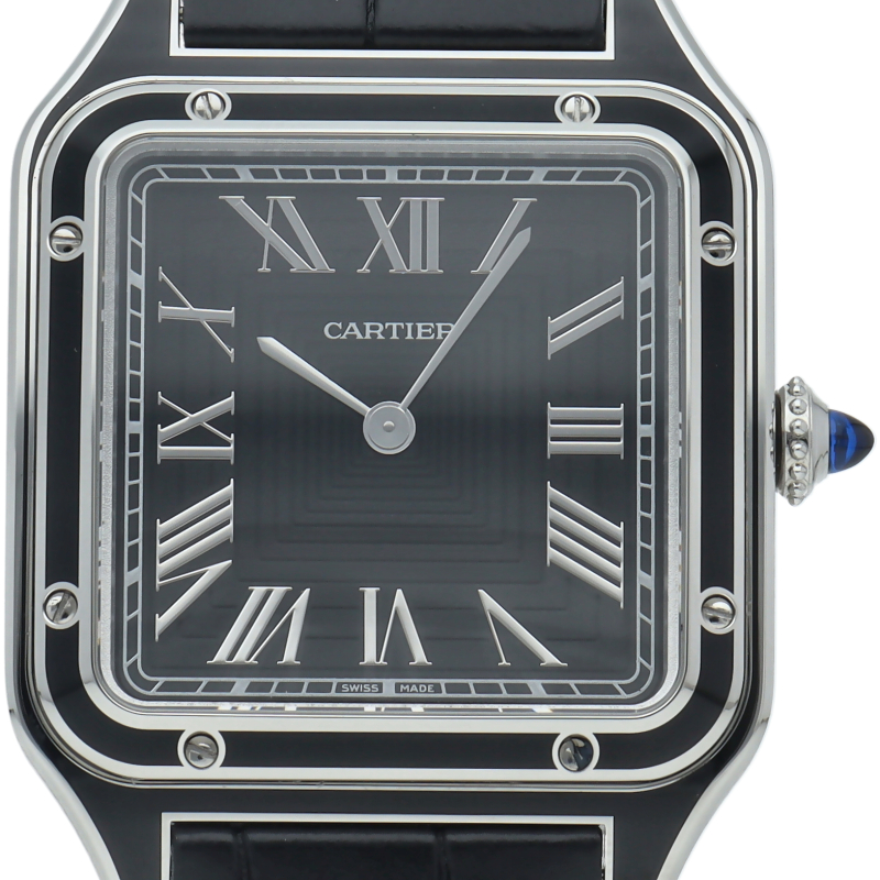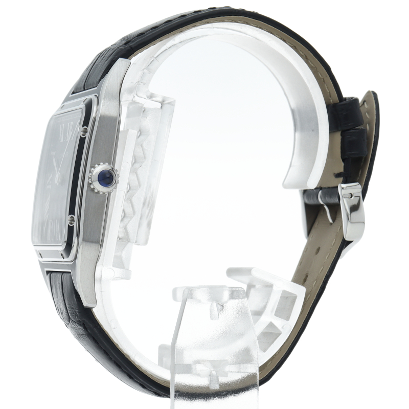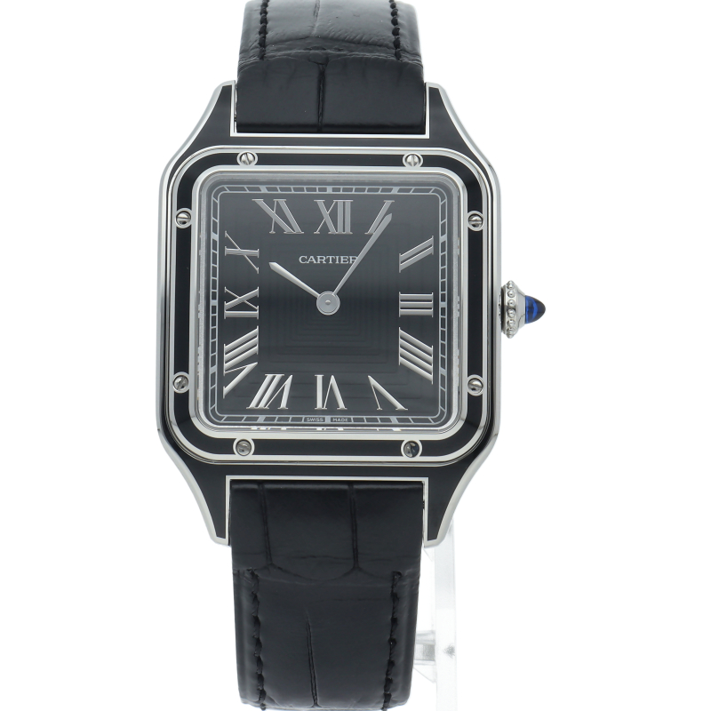ブラジルの偉大な発明家にして飛行家であるアルベルト・サントス=デュモンが1904年、カルティエに注文し「世界初の腕時計」の原型とも言われた腕時計を忠実に再現したモデルが登場。 幾何学的なフォルムとビスモチーフを特徴とする時計ケースはわずか7.3mmという薄型で腕によく馴染む形状、着用感は極めて軽快です。