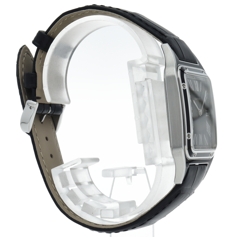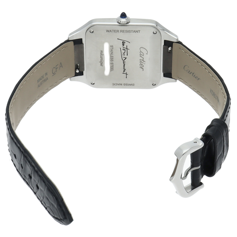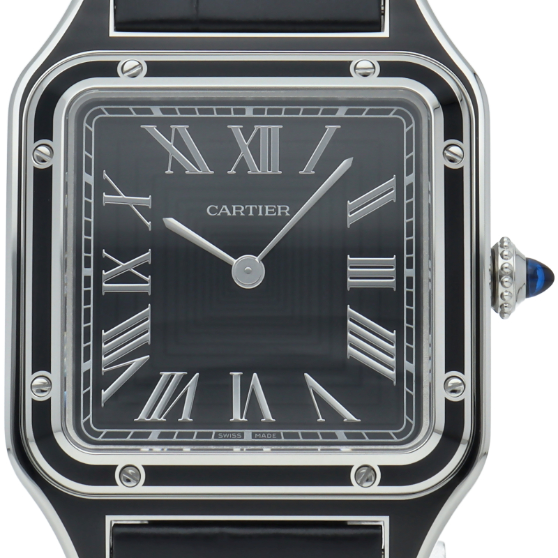 ブラジルの偉大な発明家にして飛行家であるアルベルト・サントス=デュモンが1904年、カルティエに注文し「世界初の腕時計」の原型とも言われた腕時計を忠実に再現したモデルが登場。 幾何学的なフォルムとビスモチーフを特徴とする時計ケースはわずか7.3mmという薄型で腕によく馴染む形状、着用感は極めて軽快です。