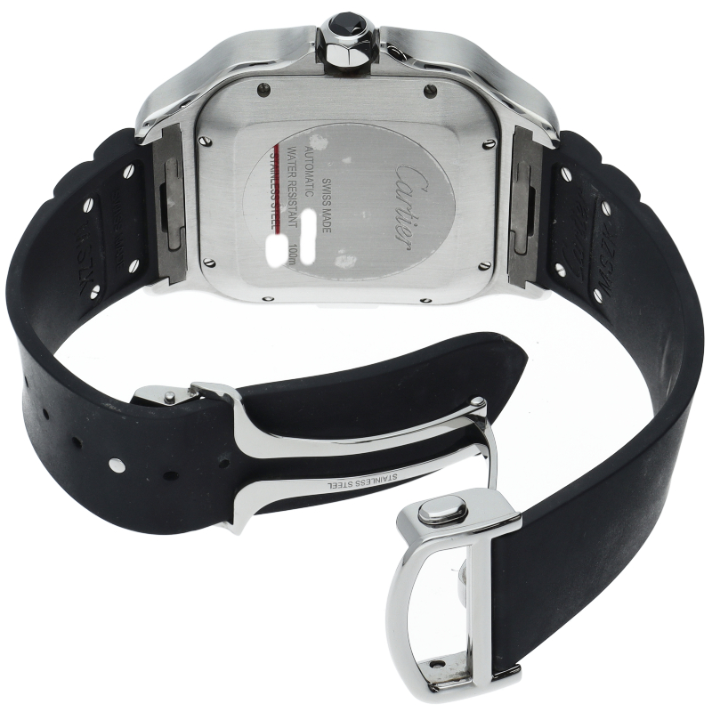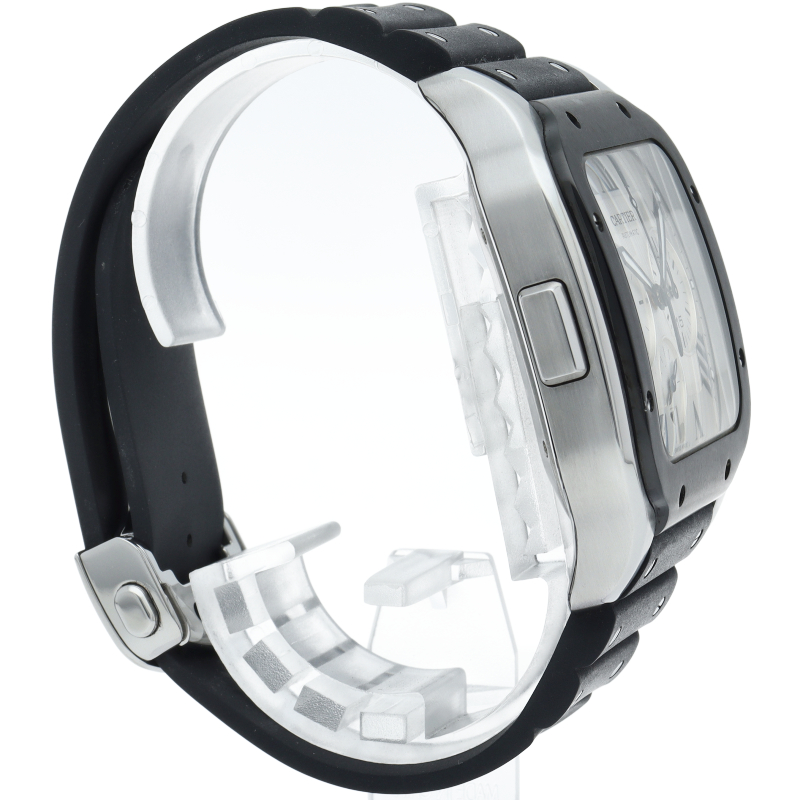 2018年にモデルチェンジされたサントス ドゥ カルティエの入荷です。新たに設計され、43.3mmの迫力あるXLサイズのケースに、カルティエ自社製の1904 CH MCムーヴメントを搭載。従来のクロノグラフとは違いスタート、リセットのボタンが無く、ケース9時側にあるプッシュボタンとリューズで操作する斬新なデザインの時計です。