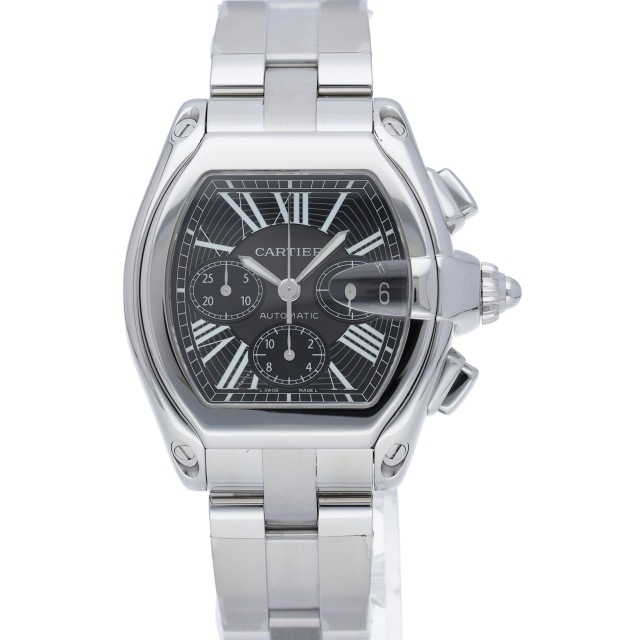 カルティエのスポーティーでなだらかな流線型のフォルムを持つ「ロードスター」。個性的で上品なデザインが魅力です。便利で実用的なクロノグラフ機能搭載。