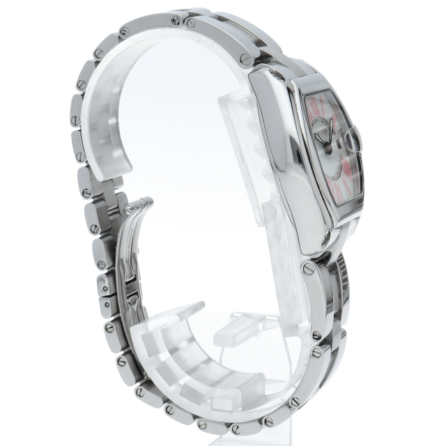 スッキリとまとまったフォルムはさっそうと風の中を走り抜けるスポーツカーの様を表現しています。丸みのあるフェイスが甘さをプラス。こちらは2008年X'mas限定の世界2000本限定のコレクションで、日本国内では230本しか販売されなかった希少なモデルとなっております。文字盤はホワイトシェルにピンクローマンインデックスで愛らしいです。