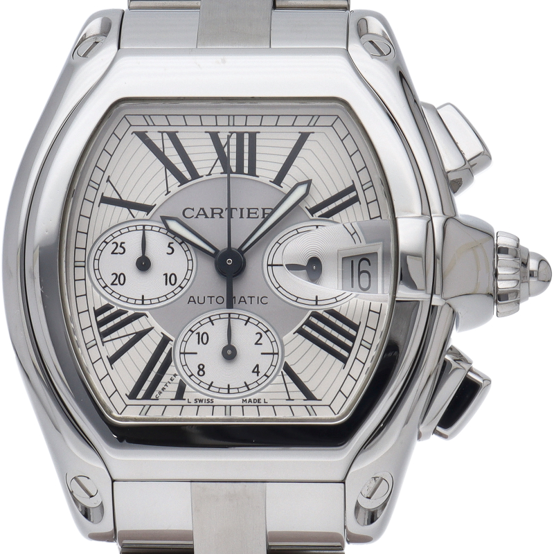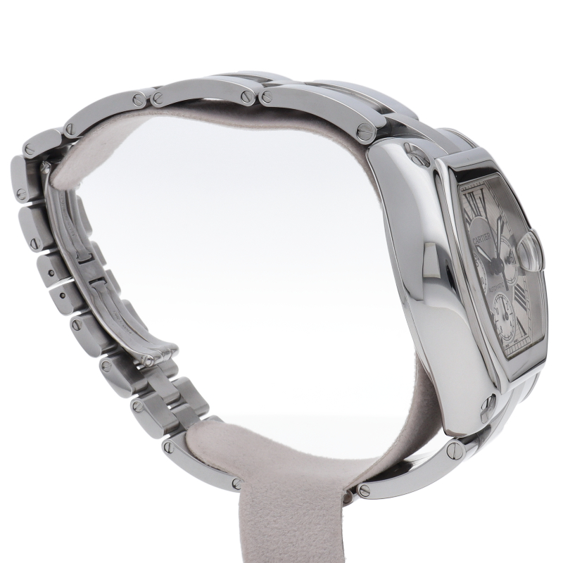 カルティエのスポーティーでなだらかな流線型のフォルムを持つ「ロードスター」。個性的で上品なデザインが魅力です。便利で実用的なクロノグラフ機能搭載。