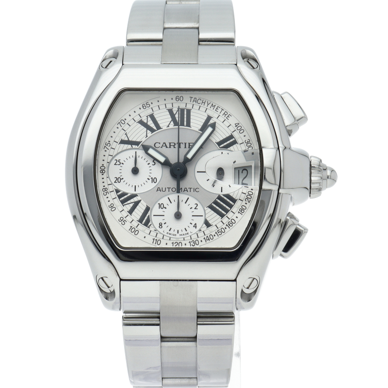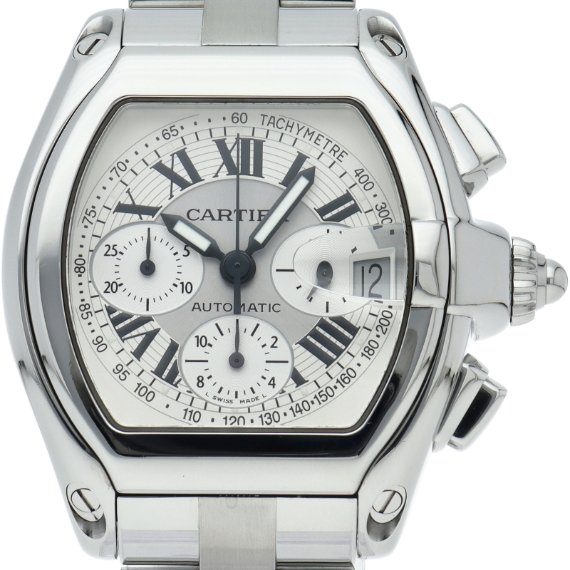 カルティエのスポーティーでなだらかな流線型のフォルムを持つ「ロードスター」。個性的で上品なデザインが魅力です。便利で実用的なクロノグラフ機能搭載。