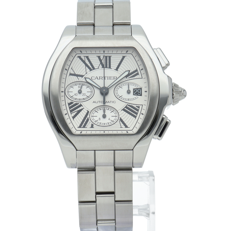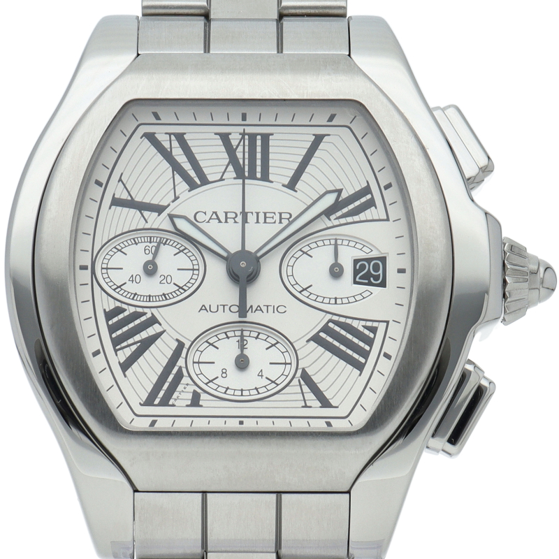 カルティエのスポーティーでなだらかな流線型のフォルムを持つ「ロードスター」。個性的で上品なデザインが魅力です。便利で実用的なクロノグラフ機能搭載。