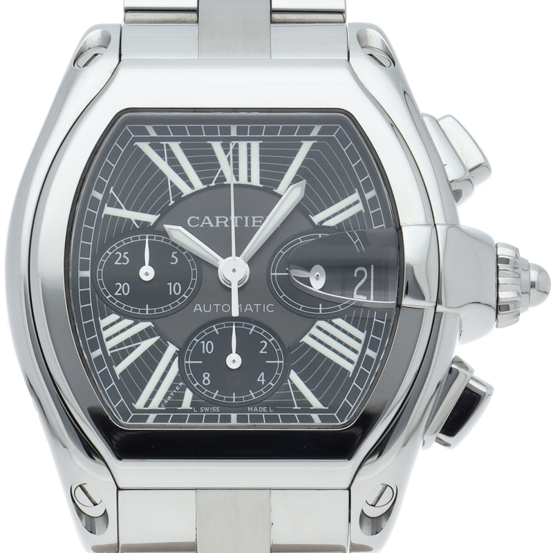 カルティエのスポーティーでなだらかな流線型のフォルムを持つ「ロードスター」。個性的で上品なデザインが魅力です。便利で実用的なクロノグラフ機能搭載。