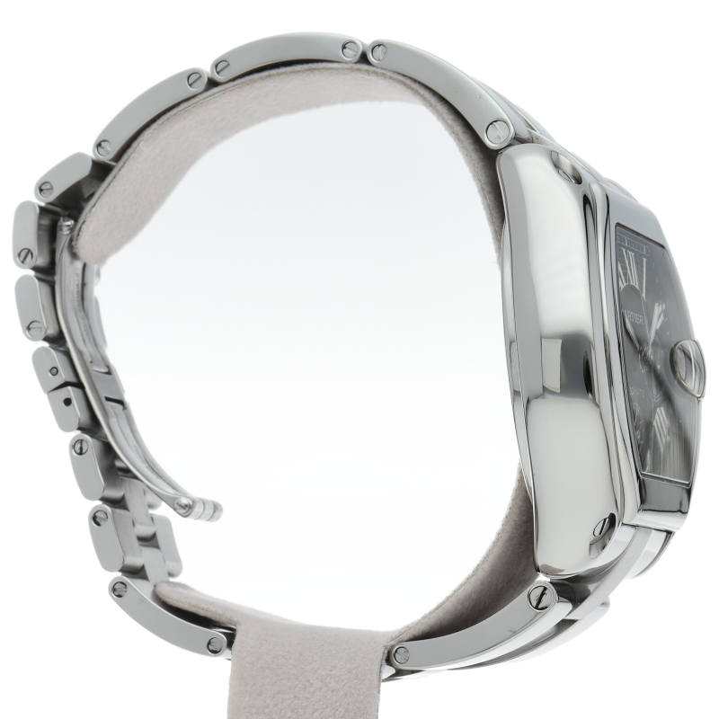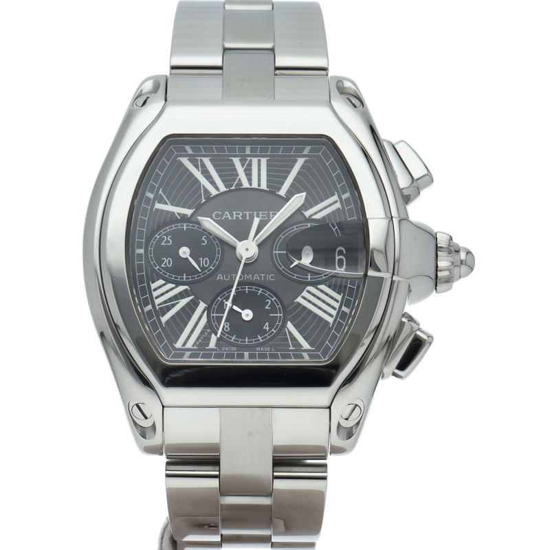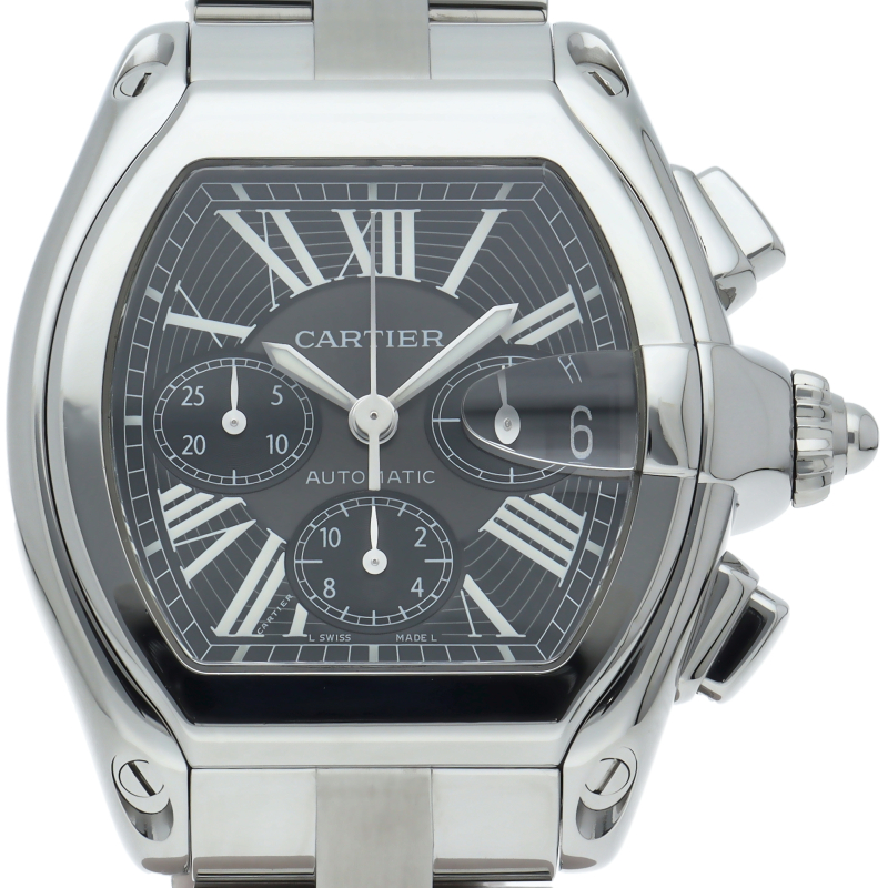 カルティエのスポーティーでなだらかな流線型のフォルムを持つ「ロードスター」。個性的で上品なデザインが魅力です。便利で実用的なクロノグラフ機能搭載。