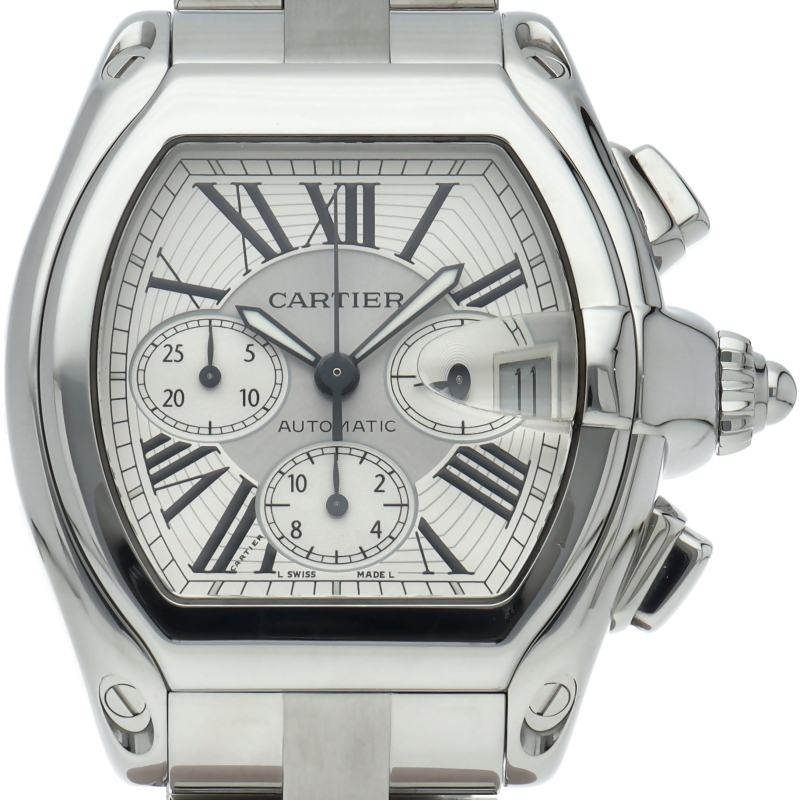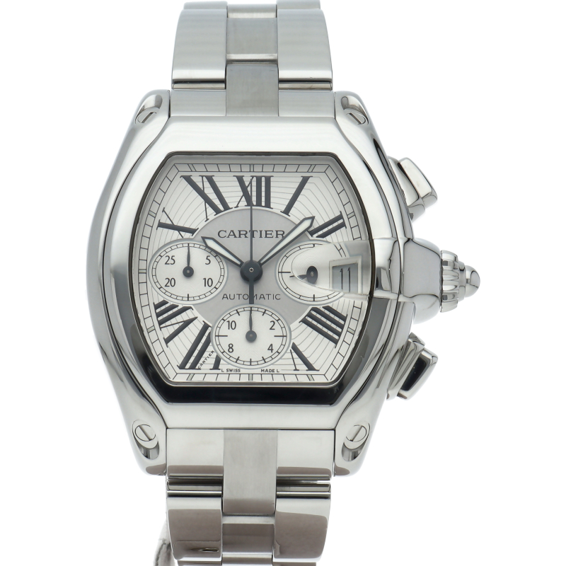 カルティエのスポーティーでなだらかな流線型のフォルムを持つ「ロードスター」。個性的で上品なデザインが魅力です。便利で実用的なクロノグラフ機能搭載。