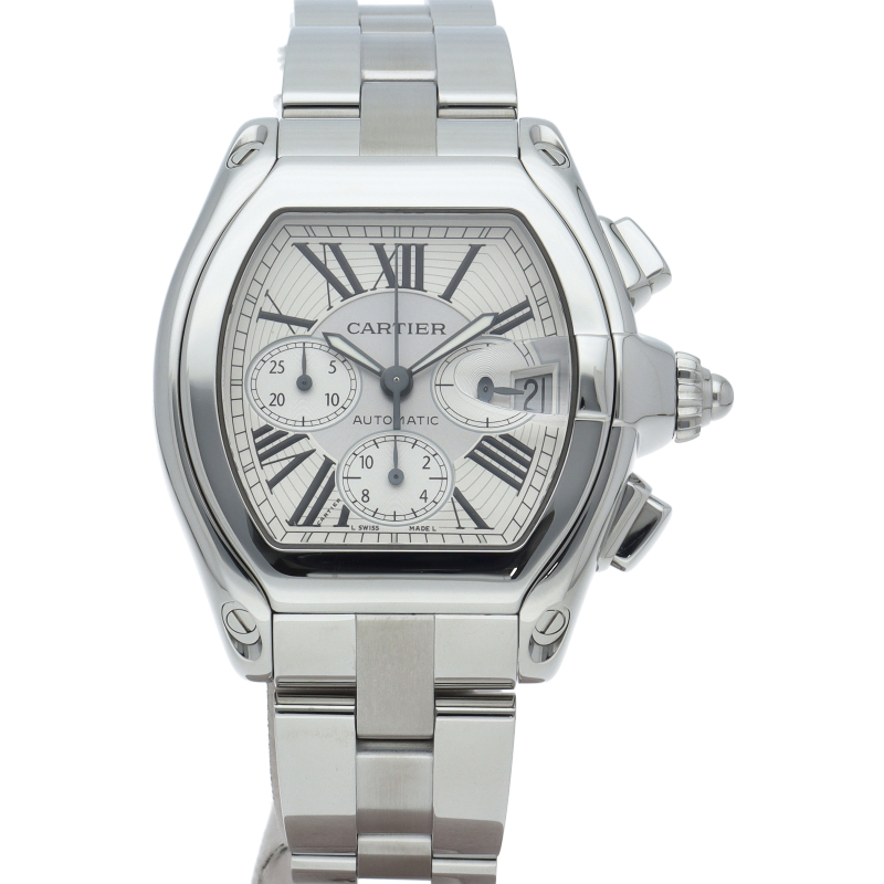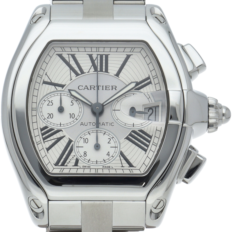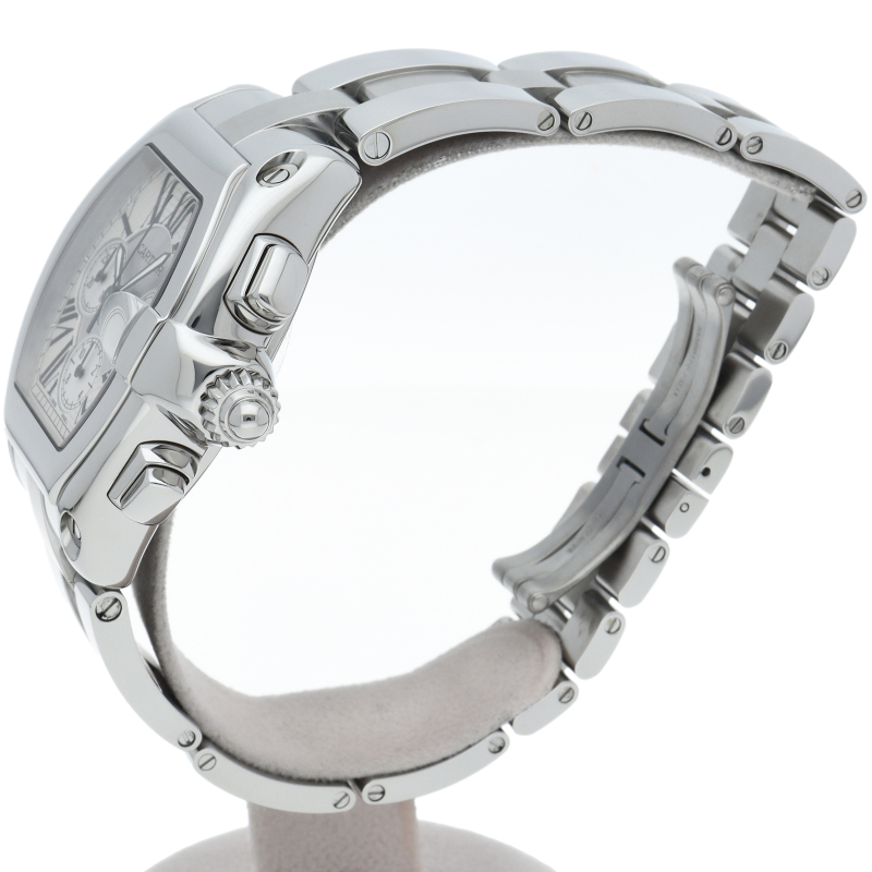 カルティエのスポーティーでなだらかな流線型のフォルムを持つ「ロードスター」。個性的で上品なデザインが魅力です。便利で実用的なクロノグラフ機能搭載。