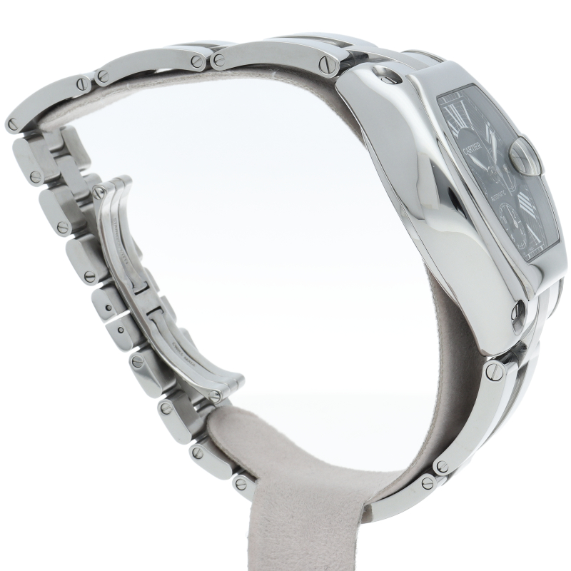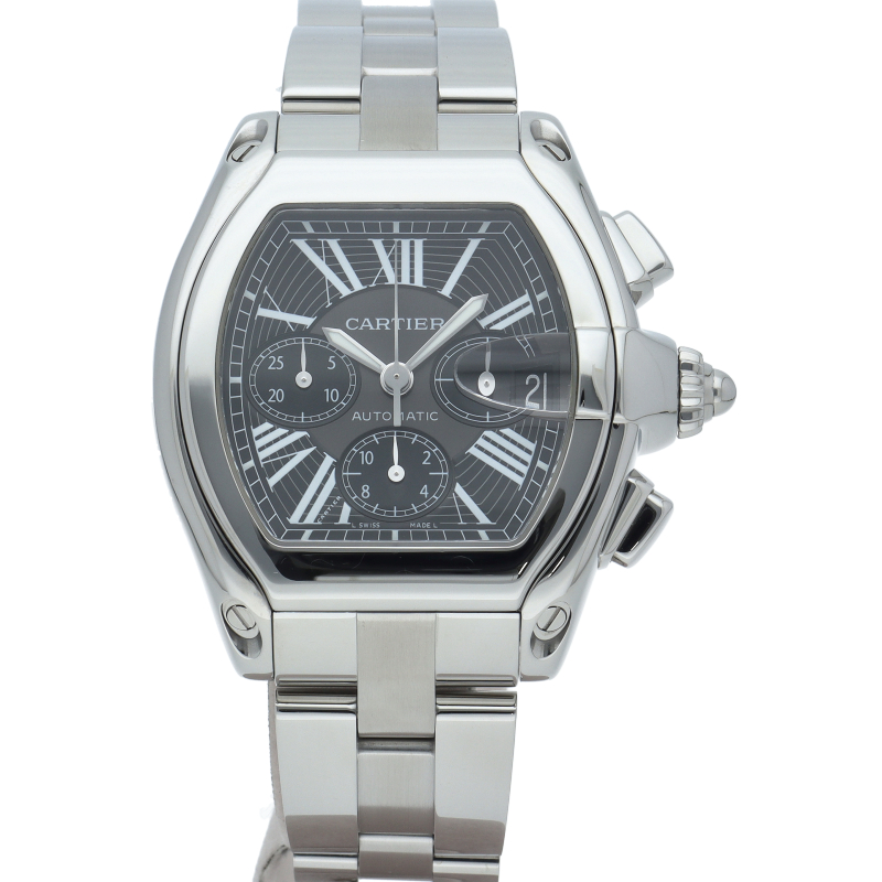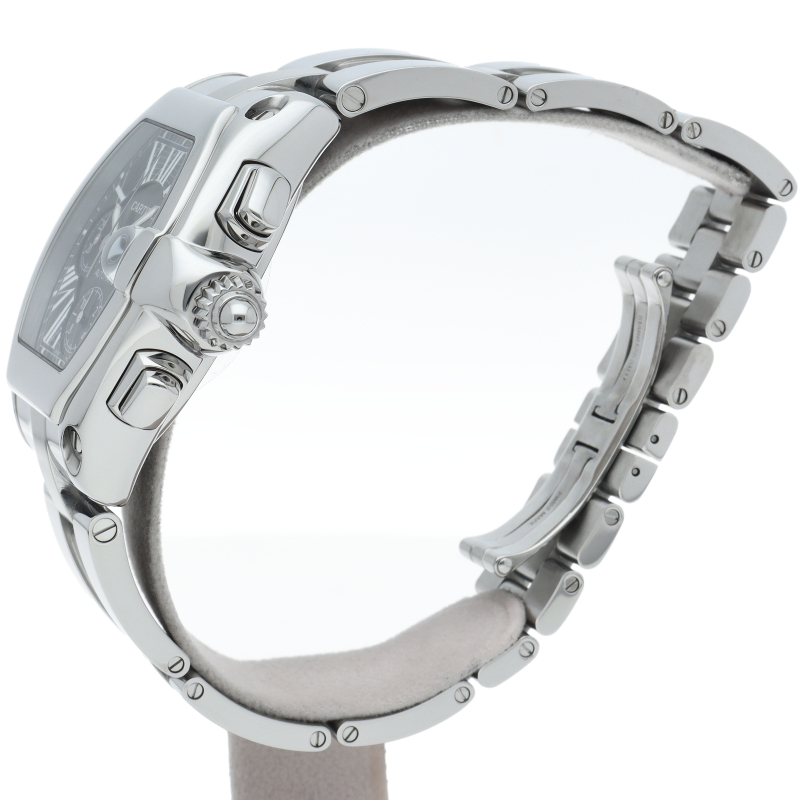 カルティエのスポーティーでなだらかな流線型のフォルムを持つ「ロードスター」。個性的で上品なデザインが魅力です。便利で実用的なクロノグラフ機能搭載。