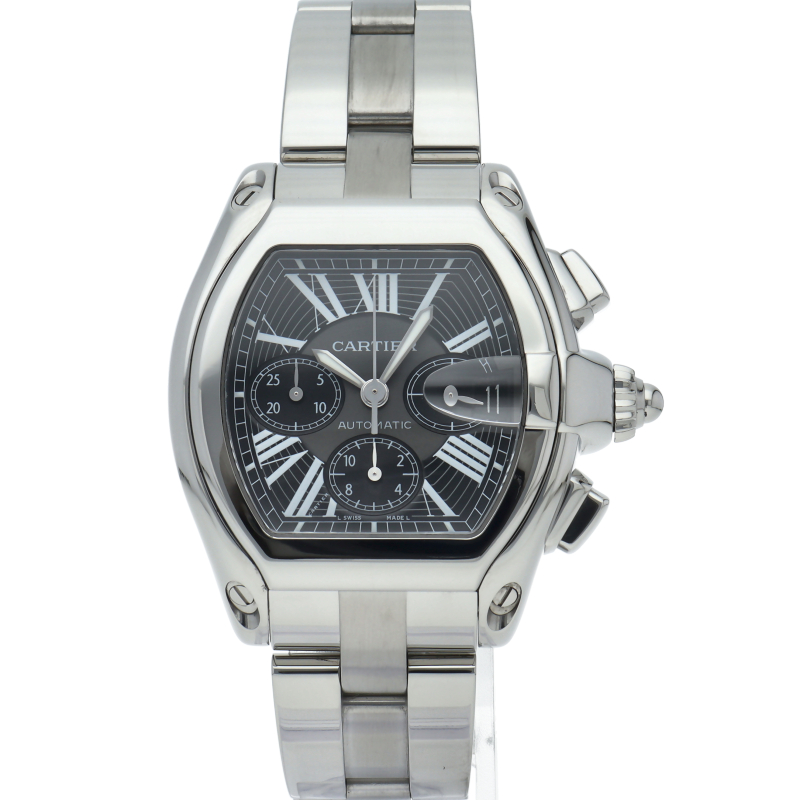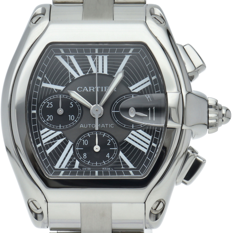カルティエのスポーティーでなだらかな流線型のフォルムを持つ「ロードスター」。個性的で上品なデザインが魅力です。便利で実用的なクロノグラフ機能搭載。
