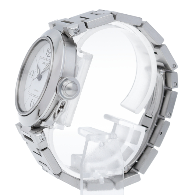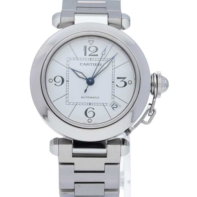 カルティエの人気パシャCシリーズ。4時と5時の間にデイト表示機能が付いた実用性のある1本。どんなシーンにも活用できるラウンドケースがオシャレです。