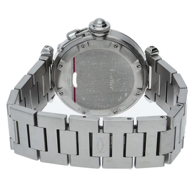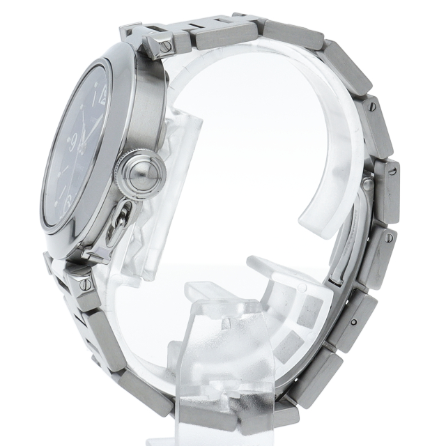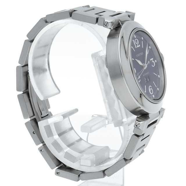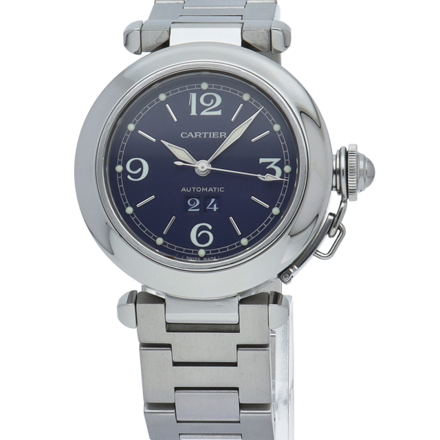 カルティエの人気シリーズ「パシャC」。大きい日付表示が特徴的なビッグデイト。視認性も良くどんなシーンにも活用できるラウンドケースがオシャレな1本。ネイビー文字盤がオシャレな一本です。