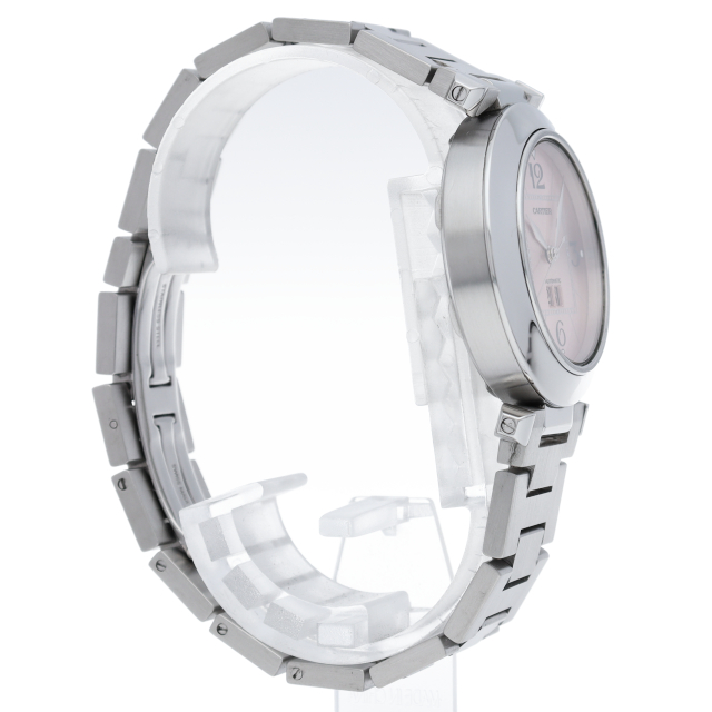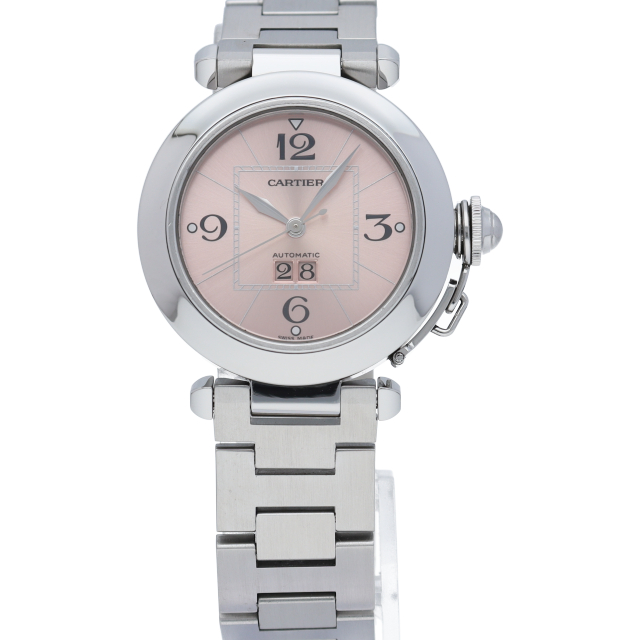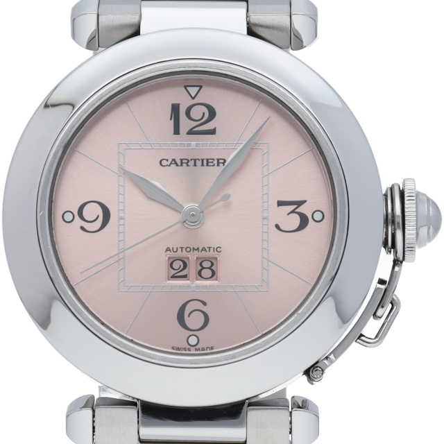 カルティエの人気「パシャC」シリーズ。大きい日付表示が特徴的なビッグデイト。視認性も良くどんなシーンにも活用できるラウンドケースがオシャレな1本。