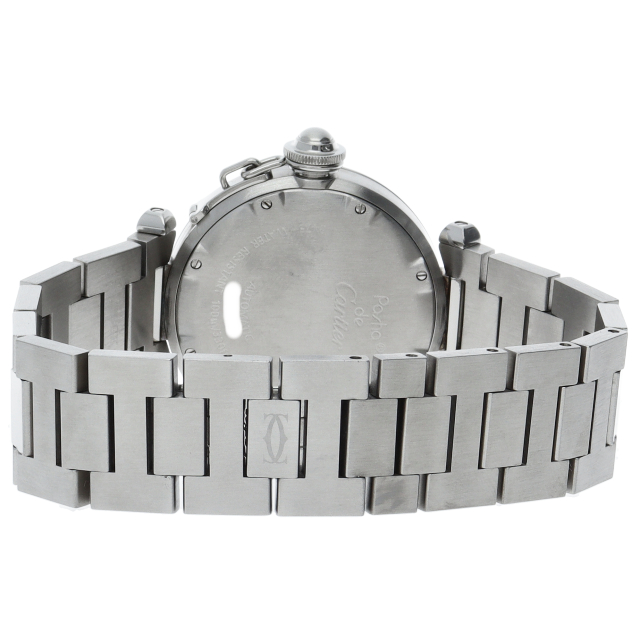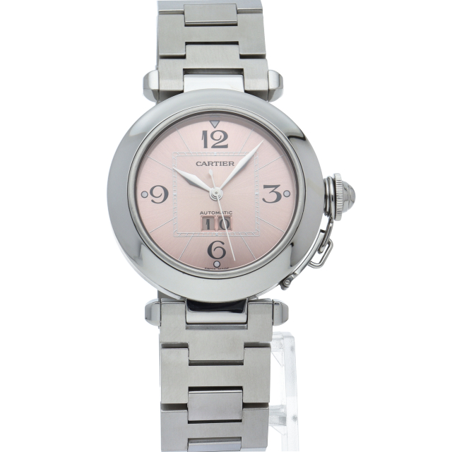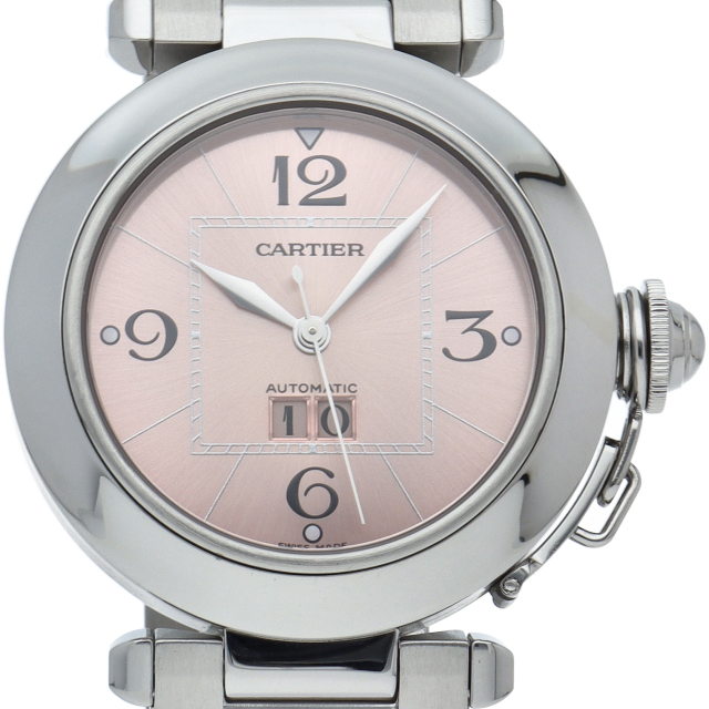 カルティエの人気「パシャC」シリーズ。大きい日付表示が特徴的なビッグデイト。視認性も良くどんなシーンにも活用できるラウンドケースがオシャレな1本。