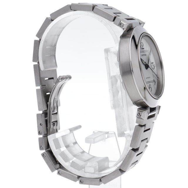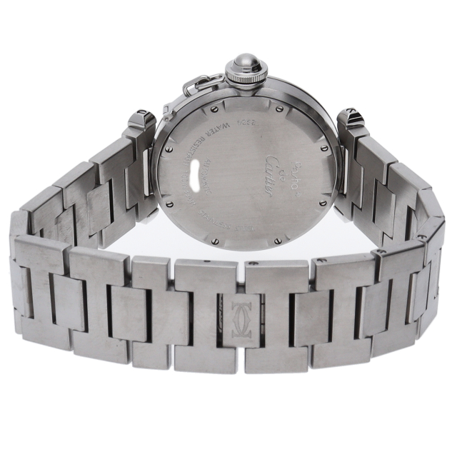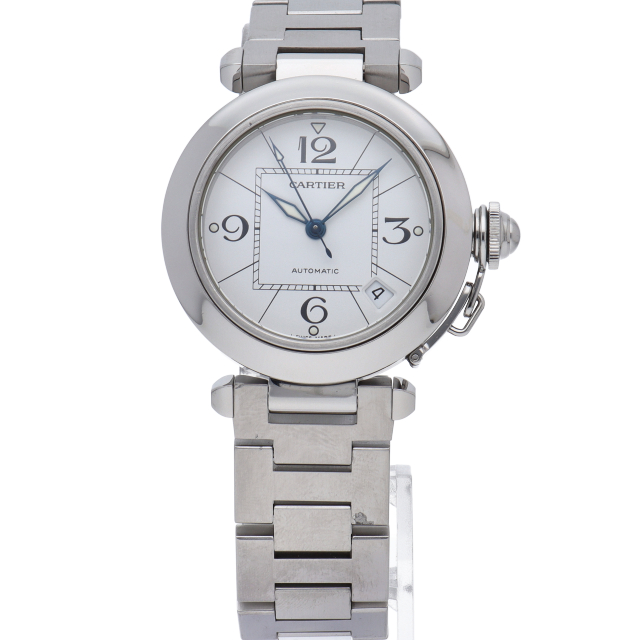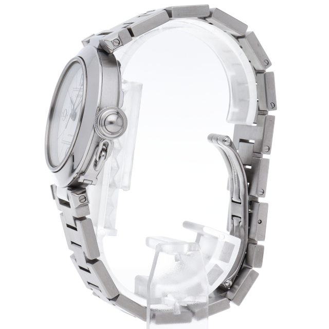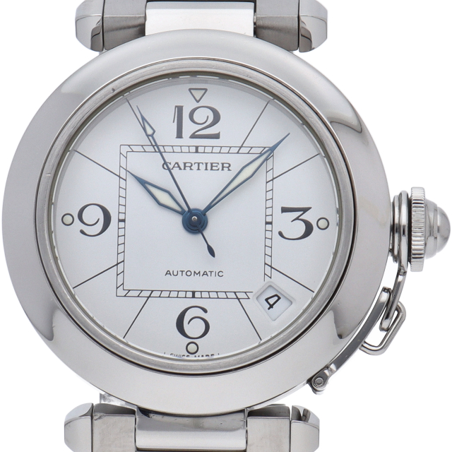カルティエの人気パシャCシリーズ。4時と5時の間にデイト表示機能が付いた実用性のある1本。どんなシーンにも活用できるラウンドケースがオシャレです。